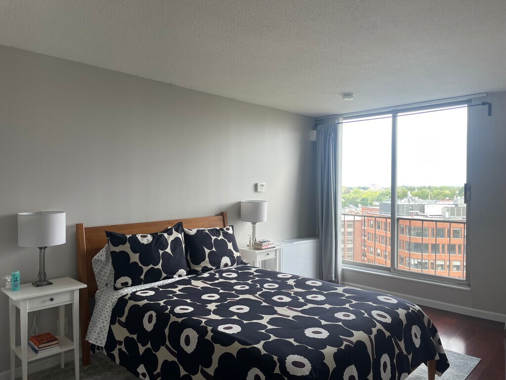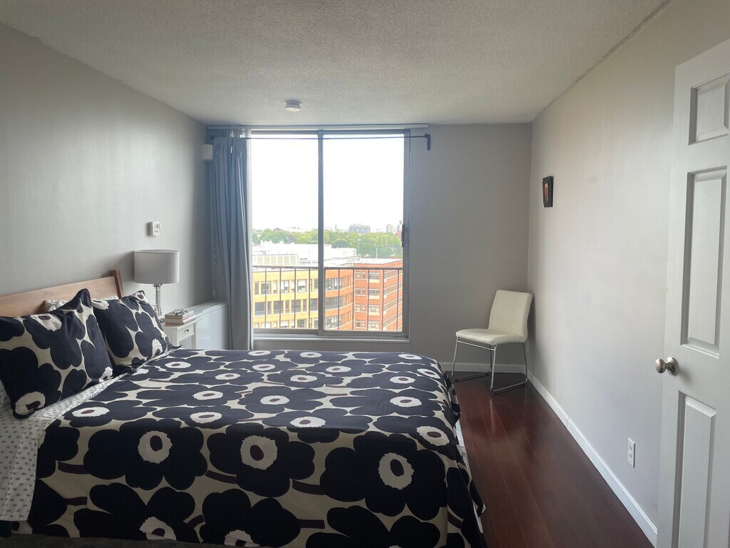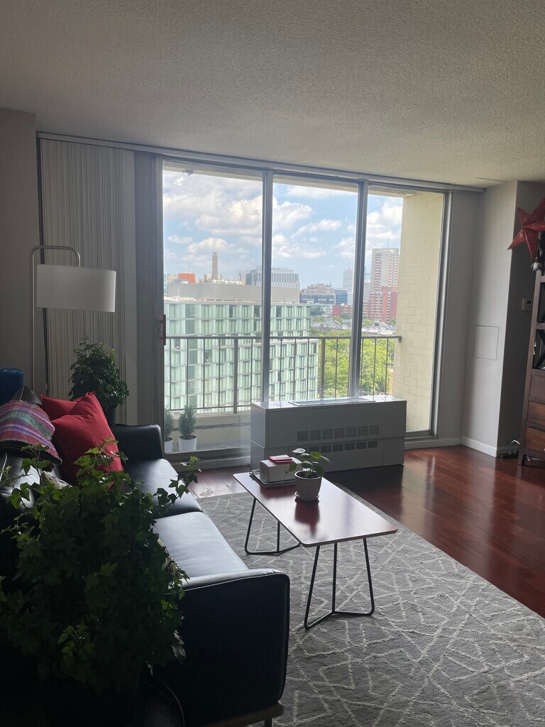 This bright and airy 1 bedroom upper-floor unit offers a spacious floorplan with city views in the highly desirable Brook House condominium complex. Natural light fills the living area through floor-to-ceiling windows and a Juliette balcony. The updated kitchen, opening to the living area, includes a dishwasher, disposal, new stainless steel refrigerator, gas stove, and microwave. The large bedroom features both ample closet space and natural light. Hardwood floors throughout, plus air conditioning, heat and hot water included. One garage parking space is negotiable. Building amenities include a 24-hour concierge, elevator, seasonal outdoor pool, BBQ area, tennis court, golf putting green, table tennis, herb garden and three exercise rooms (weight, aerobics, and yoga). Conveniently located near Green line D/E trains, Longwood Medical Area and a short distance from Brookline and all that downtown Boston has to offer!Pets negotiable. Parking spot negotiable. Lease to end 8/31/2025.