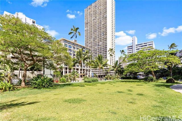 Corner end residence in Seaside Suites overlooking the Ala Wai canal with mountain and golf course view. This 1-bedroom unit features granite counter tops, dishwasher, self-cleaning oven, updated bathroom, and engineered wooden floors. Relax on your large lanai or in the private garden area. There is coin operated laundry next to your unit and on every floor. A secured building with 1 assigned covered parking. Located in the heart of Waikiki surrounded by world class shopping and dining with Centennial Park across the way. Minutes to Waikiki Beach and Kapiolani Park where you can enjoy the best of Oahu's outdoor lifestyle.