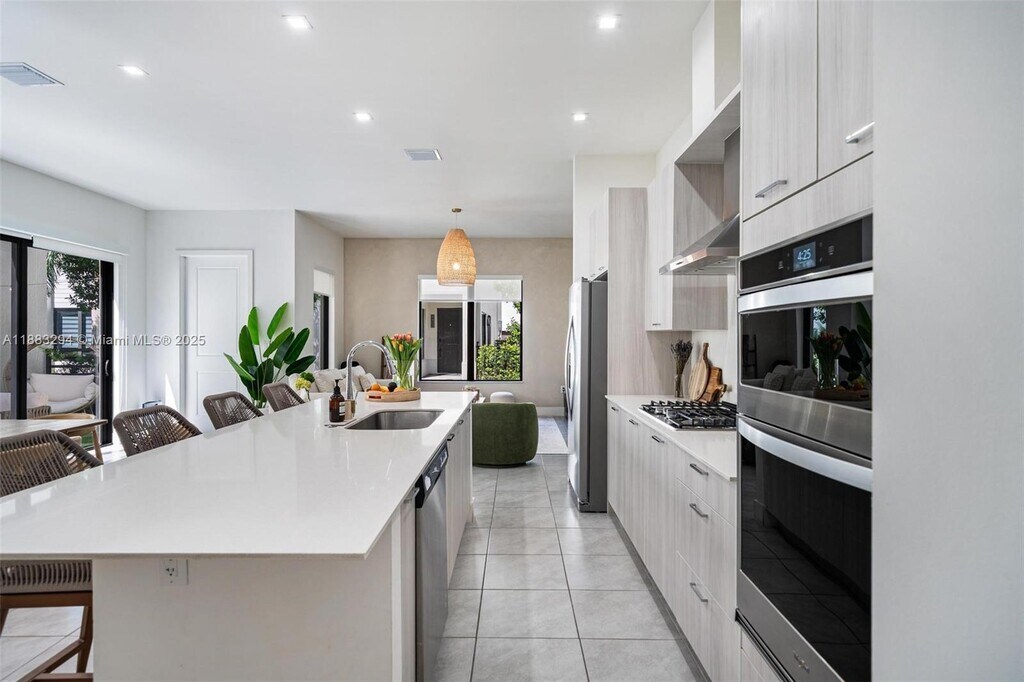 Ready to move-in 4-bedroom, 3-bathroom single home in the desirable Downtown Doral. This beautiful unit comes with floors throughout the first and second floor, and modern cabinets with nice open kitchen. Includes living - dining room. Large kitchen green appliances and quartz peninsula. Hurricane impacts doors and windows, blinds, 1-car garage, terrace with pavers. Main Suite on the second floor with independent walk-in closets and a master bathroom.