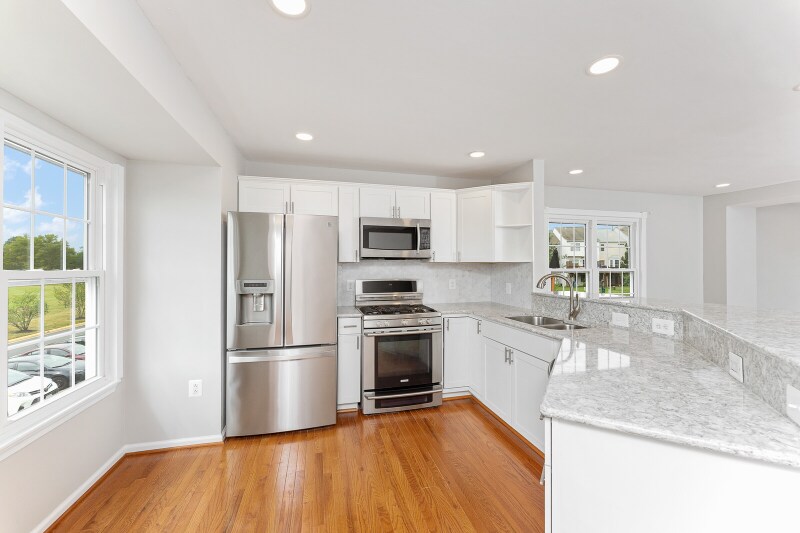 Property Id: 687925 Available to move in NOW -4 bedrooms and 3 full baths end unit townhouse. -1st level features brand new luxury waterproof vinyl flooring, rec/living room, a bedroom/office and newly upgraded full bath. -2nd level features hardwood floor, recently upgraded kitchen with white cabinets and gorgeous quartz countertop with bar and wall to wall backsplash, stainless steel appliances(brand new dishwasher), separate dinning area, large dining and family rooms w/ a wood burning fireplace with marble surrounding. -Top floor features hardwood floor master bedroom suite with large walk in closet, recently upgraded luxury private bathroom with separate shower and tub, 2 more carpet floor bedrooms with large closet and a newly upgraded full bath. -Large and lots of privacy deck and patio backs to woods and common area. -Great community features fitness,19 tennis courts, indoor and outdoor pools, Marina and 8 private man-made lakes and ponds that residents can enjoy fishing&boats