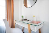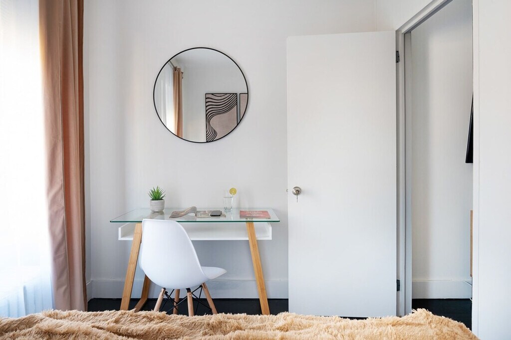 Welcome to your urban sanctuary in the heart of Hell's Kitchen. Indulge in the allure of New York City living with this exquisitely designed 1-bedroom apartment. This fully furnished apartment offers comfort and convenience with a queen-size bed, plush memory foam mattress, and a fully equipped kitchen with high-end appliances. Enjoy high-speed Wi-Fi, a 50” Smart TV, and all-inclusive utilities for a hassle-free stay. Located in a secure elevator building with code-access doors, this stylish home provides both safety and ease. Perfectly situated in a prime location, it’s ready for you to move in—just bring your suitcase! This newly furnished 1-bedroom apartment, located in the heart of Hell's Kitchen, offers a modern and sleek design for complete comfort and style. The living room is equipped with a couch, a 48" HDTV Smart TV, Wi-Fi, and air conditioning during the summer. The kitchen is fully equipped, perfect for preparing meals and snacks. The bedroom has a queen-size bed with a memory foam mattress, and the apartment is fully furnished with all new furniture. Guests will receive clean linens and towels upon arrival, making it a great option for business and leisure travelers looking for a comfortable, modern, and move-in ready home in the heart of Manhattan. Hell's Kitchen, located on the west side of Manhattan, is a neighborhood that exudes vibrancy, character, and urban charm. With its rich history and diverse community, Hell's Kitchen offers a unique and captivating atmosphere that captures the essence of New York City living. Strolling through the streets, you'll encounter a fusion of old and new, as historic brownstones coexist alongside sleek high-rises. The neighborhood is known for its bustling streets, lined with an eclectic mix of trendy restaurants, cozy cafes, and vibrant bars. From renowned dining establishments to hidden gem eateries, Hell's Kitchen is a culinary paradise that caters to every palate. New York City's heating season is until the end of May. Beginning around mid-April, window air conditioning will be installed in the apartment. You can request an earlier installation if needed. [SI]
