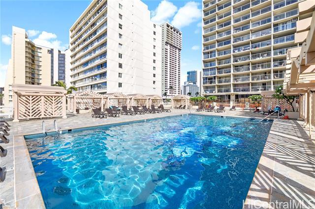 Enjoy convenient Waikiki living from this 38th-floor studio located in the Island Colony building. This interior unit offers 292 square feet of efficient living space plus a 104 square foot open lanai, providing additional outdoor space and natural light. The unit features an open layout, full bathroom, and practical floor plan ideal for comfortable island living. Island Colony amenities include a pool, sauna, secured entry, and on-site management. The building is centrally located in Waikiki, just minutes from beaches, shopping, dining, bus lines, and entertainment. Water, sewer, and trash included. Tenant responsible for electricity, cable, and internet. No pets. No smoking. Contact us to schedule a showing.