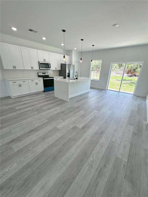 One or more photo(s) has been virtually staged. Discover the perfect place to call home! This charming ranch-style property offers 4 spacious bedrooms,all featuring large closets that provide excellent storage and comfort for the whole family. The 2 well-designed bathrooms add practicality and functionality to the home’s smart layout. As you step inside,you’re welcomed by an open-concept floor plan that seamlessly connects the living room,dining area,and kitchen — creating an inviting space perfect for everyday living and entertaining. The kitchen is a true highlight,featuring elegant quartz countertops,a central island,a convenient pantry,ample cabinetry,and included appliances,making meal preparation both stylish and efficient. The home also offers a cozy front porch ideal for relaxing outdoors,sliding glass doors that bring in abundant natural light and provide easy access to the backyard,a dedicated laundry room for added organization,and a spacious two-car garage with automatic opener. Designed with both sophistication and low maintenance in mind,the property features durable vinyl flooring throughout. Every detail has been thoughtfully selected to provide comfort,convenience,and modern living. Located near downtown Ocala,with easy access to shopping,dining,schools,and major roadways,this home offers the lifestyle you’ve been looking for. Schedule your showing today and make this beautiful house your next home! MLS# O6387537