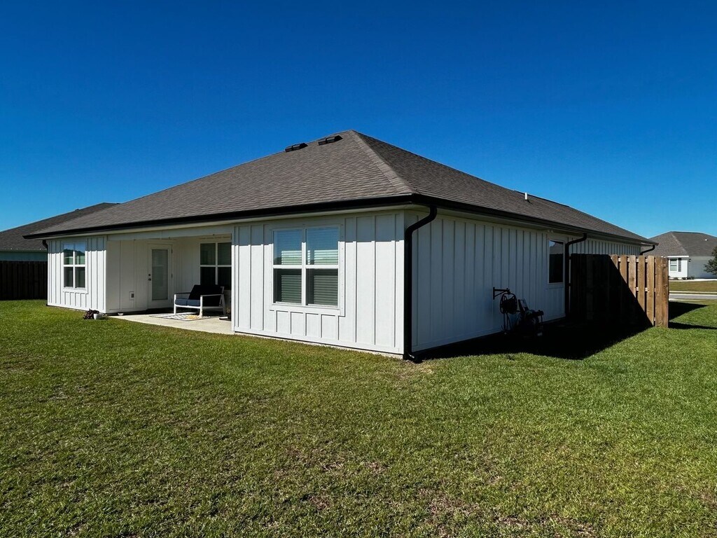 You'll love this beautiful,open concept home located just 15 minutes from the beaches of Gulf Shores,AL and walking distance to the new High School due for completion in 2026. This home has luxury vinyl plank flooring throughout with LED recessed lighting creating a light and bright interior. The fully equipped kitchen boasts granite countertop,all stainless steel appliances including a side by side refrigerator with ice/water in the door,dishwasher,electric range and built in microwave. The large bar area is perfect for entertaining or a casual quick snack at the bar. There is also a separate dining area if you want a more formal dining option. The living room is easily viewed from the kitchen,so no need to be isolated from family gatherings. The master bedroom with ensuite bath has a vanity with granite tops,dual sinks,a separate shower,garden tub and over sized walk in closet. There are 3 additional bedrooms and another full bath,as well as an indoor laundry room with washer/dryer included. This home sits on a large privacy fenced lot with a covered back lanai complete with a TV,so sit outside and watch the game or your favorite shows and just relax! There is a 2 car garage with electric door opener for added convenience. If all of this is not enough to entice you,come enjoy the community pool and gazebo surrounded by beautiful oak trees. All of our homes are non smoking and a small pet will be considered with owner's prior approval and $500 non refundable pet fee. Roommates,if owner approved,must apply separately and qualify individually. * Washer/dryer and TV are courtesy items only and are not warranted.