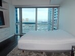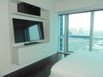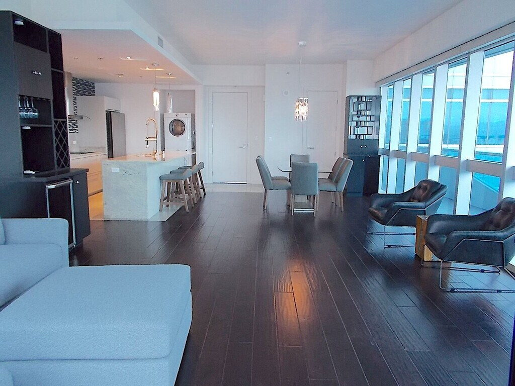 This stunning unit features an open-concept living area with dramatic floor-to-ceiling windows and a private balcony showcasing breathtaking views of the Las Vegas Strip. The modern kitchen is appointed with stainless steel appliances, stone countertops with full backsplash, sleek contemporary cabinetry, tile flooring, and a spacious island accented by recessed lighting and two elegant glass pendant fixtures. A conveniently located stackable washer and dryer are tucked neatly into a kitchen-adjacent nook for added ease. Bedroom one offers floor-to-ceiling windows, a queen-sized bed, and a mounted television. The connected hall bathroom features tile flooring, recessed lighting, and a glass-enclosed tile shower with Strip views. The primary suite includes plush carpeting, a queen-sized bed, and television. The en-suite bath is designed with double sinks and a walk-in shower. Enjoy luxury high-rise living just steps from the heart of the Strip, with world-class dining, entertainment, and shopping moments away. This home is professionally managed by Century 21 Americana Property Management. Pets are considered case-by-case with possible restrictions and a pet deposit per pet. No aggressive breeds allowed. Renters insurance is required before move-in. A $150 admin fee is due at move-in. Tenants are billed $25/month each for sewer and trash. All residents are enrolled in the $50/month Resident Benefits Package, which includes liability insurance, credit building, identity theft protection, air filter delivery (if applicable), move-in concierge, a resident rewards program, and more. Full details available upon application. Sewer, Trash and Residents Benefits Package already included in the rent amount. You can apply online at Application fee is $75.00 per adult who will occupy the property, all must apply and Application fees are NON REFUNDABLE.
