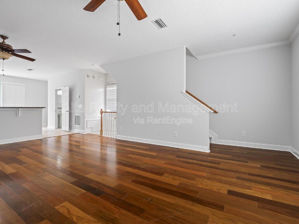 Upgraded 3BR/3.5BA townhome with a spacious 3-level layout! First floor features a private bedroom with full bath and walk-in closet--perfect for guests or a home office--with direct access from the 1-car garage. The second level offers open-concept living with stunning Brazilian hardwood floors,seamlessly connecting the living,dining,and kitchen areas. Gourmet kitchen includes granite countertops,oversized island with breakfast bar,stainless steel appliances,glass accent cabinetry,and walk-in pantry. Enjoy a private balcony off the kitchen--ideal for grilling and natural light. Third floor features a primary suite and additional bedroom,each with full baths and walk-in closets,plus convenient washer/dryer on the landing. Located minutes from St. Johns Town Center shopping,dining,and entertainment. Tenant Benefits Package required ($65/mo-not optional). Schedule your showing today! MLS# 2140107