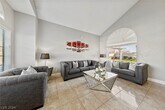 Fully furnished gorgeous Silverado Ranch home! Property features custom tile throughout, custom cabinetry and granite countertops in kitchen. Family room with plush couch, flat screen tv and fireplace! Upstairs welcomes you to more custom tile work, your oversized primary suite and two guest bedrooms with a shared bathroom. Beautiful back yard with sparkling pool, massive covered patio with BBQ and dining table for entertaining. Custom pavers lead you through the landscaping to the second covered gazebo with firepit and lounge chairs!