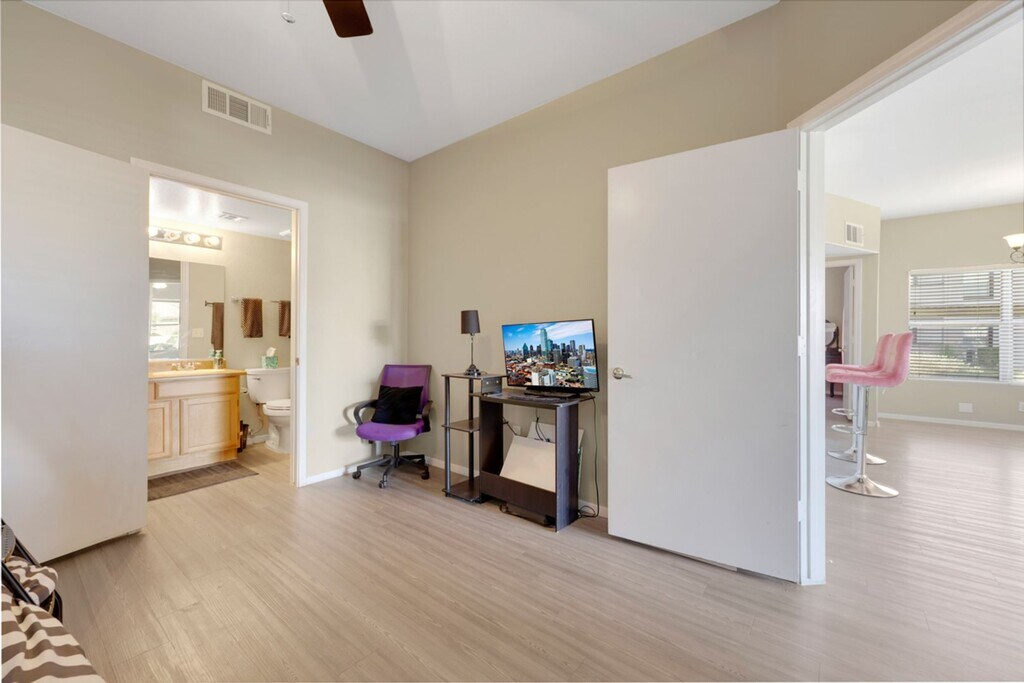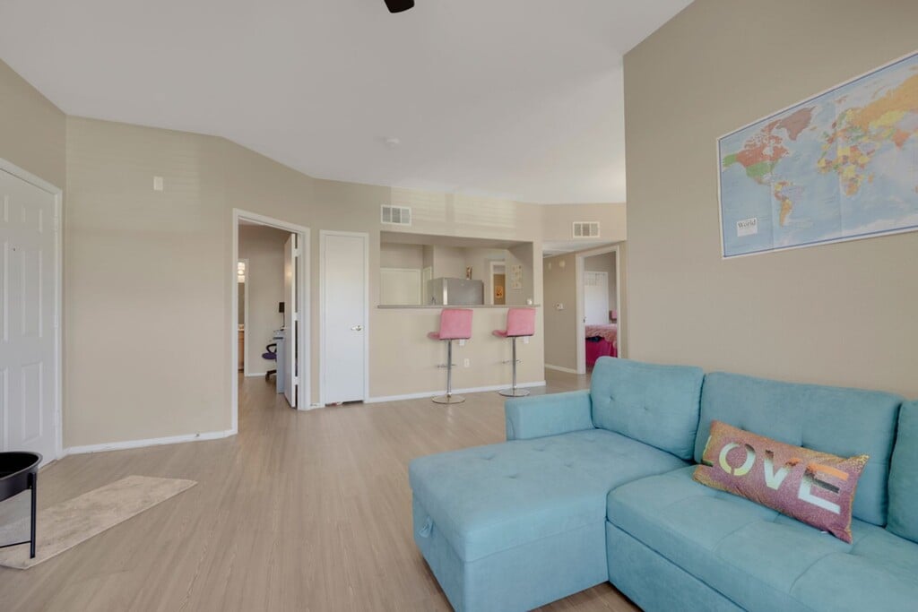 Beautifully upgraded 2-bedroom, 2-bath unit within a gated community. Fresh paint, quartz counters, breakfast bar, and vinyl plank flooring throughout. Both baths feature upgraded walk-in showers. Open living area. Community Pool & Spa Close to shopping, dining, and interstate access. MLS ID 2765592