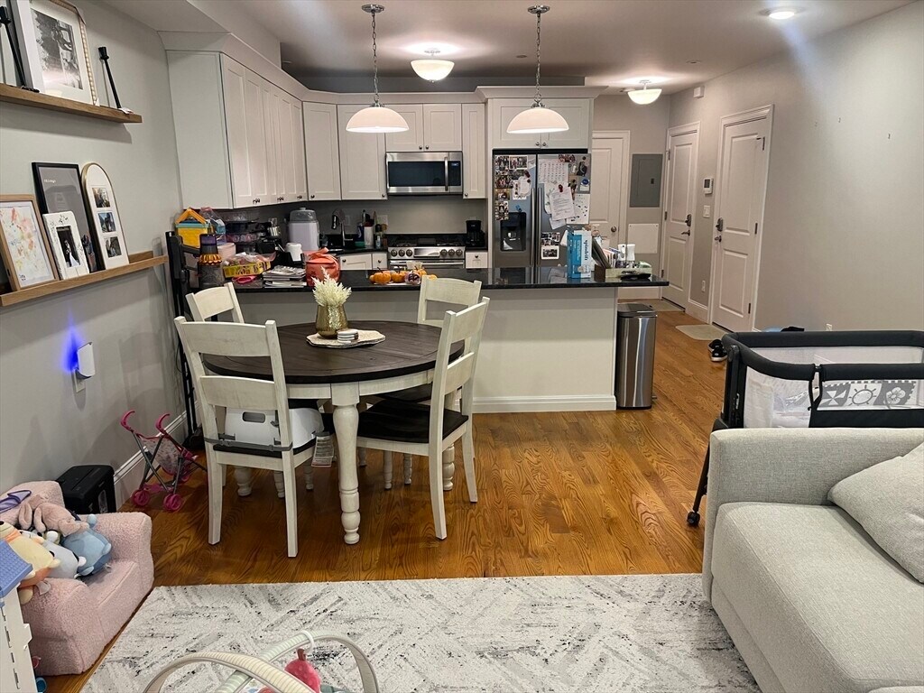 Beautifully built in 2020,this modern 3-bedroom,2.5-bath duplex offers the perfect blend of style and convenience. Located on the second floor,this spacious home features hardwood floors throughout,central air,and in-unit laundry.The open-concept living area provides excellent flow for entertaining and everyday living. Upstairs,the primary suite includes a private bath and generous closet space.Enjoy shared outdoor amenities,including two gas grills,a patio,firepit,and dedicated dog area. One garage parking space included.Conveniently located near shops,restaurants,and public transportation in desirable West Roxbury MLS# 73448150