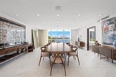 Adrian BurkeSEASONAL. Renovated home by NMR Design Group. Open kitchen and bar concept with granite crystalized backlit counter tops - LED lit storage and shelving underneath. Polished calacatta porcelain floor tiles in common areas with hardwood floors in bedrooms. Lighting upgraded throughout granting option to change the ambiance as you see fit. Bathrooms updated with custom vanities, wallpaper with TOTO Toilets and Kohler plumbing fixtures. Custom vanity / make up station in master bath along with stand alone tub - separate shower. Built in closets and plenty of linen storage. Balcony boasts water and city views - feels like extension of living room. Extra parking available through valet. Check out virtual tour. 6 Month Min Lease Apr 1st - Nov 30th Summer 2026 (Negotiable). Resort Style Amenities.