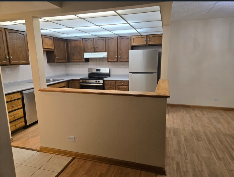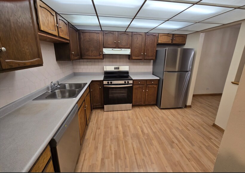 Spacious and bright 2-bedroom, 2-bathroom apartment on the elevated first floor of a 5-story building. Enjoy a serene balcony overlooking a lush park and small lake. The apartment features a newly installed central air conditioning and heating system, gleaming hardwood floors throughout, and a large master bedroom with a walk-in closet. The modern kitchen includes new installed electric stove, refrigerator, dishwasher, ceiling light, and ample pantry space. Conveniently located on the same floor, you'll find a laundry room and heated storage space. Situated in the vibrant Wheeling living sector, the building is close to downtown Wheeling, shopping, top-rated Wheeling schools, the train station, and offers easy access to Highway 294. Residents can relax and unwind at the outdoor pool and tennis court or enjoy the clubhouse, which features a fully equipped fitness room, a recreation area with billiards, and a cozy library. To schedule an appointment to view this apartment, please call or text me anytime at . I'm flexible and happy to work around your schedule!