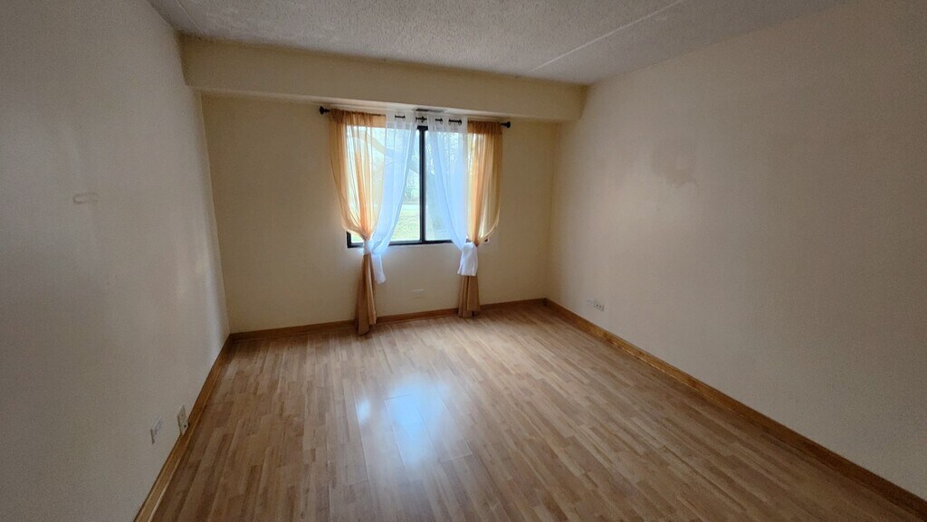 This large and light-filled apartment is located on the elevated first floor of a five-story building. The private balcony overlooks a peaceful park and small lake, offering a relaxing view. Inside, the apartment features hardwood floors throughout and a brand-new central air conditioning and heating system. The spacious master bedroom includes a walk-in closet, while the second bedroom is well-sized and versatile. The updated kitchen comes with a new electric stove, refrigerator, dishwasher, ceiling light, and a pantry for extra storage. Conveniences include a laundry room and a heated storage area on the same floor. The building is situated in Wheeling, close to downtown, shopping, schools, and the train station, with quick access to I-294. Community amenities include an outdoor pool, tennis courts, and a clubhouse with a fitness center, billiards, recreation area, and a small library.