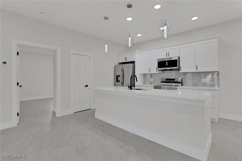 Brand-new 2025 duplex located in the highly desirable Southwest Lehigh Acres area,conveniently near Sunshine Blvd,Gunnery Rd,and Lee Blvd,offering easy access to Fort Myers,shopping,dining,and schools. Each unit features 3 bedrooms,2 bathrooms,and a 1-car garage with laundry,designed with modern finishes,tile flooring throughout,impact-resistant windows,and a bright open-concept layout that creates a spacious and inviting feel. The kitchens offer sleek cabinetry and ample counter space,ideal for everyday living and entertaining. Built with solid concrete block construction and a stylish stucco exterior,this duplex sits on an oversized 0.30-acre corner lot with separate entrances for added privacy and convenience. This move-in-ready rental property offers modern design,quality construction,and an excellent opportunity in one of Lehigh Acres’ fastest-growing areas.