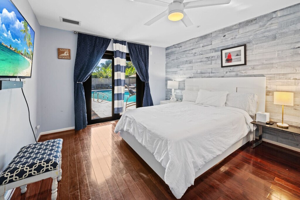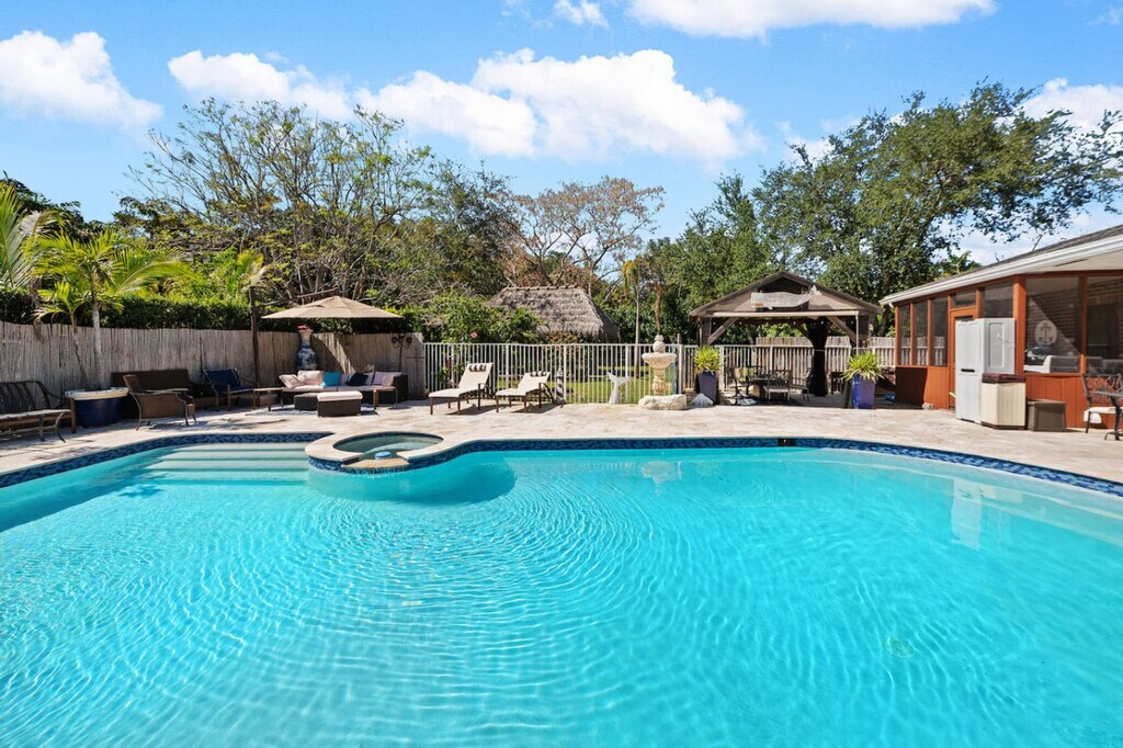 Feel at home in this resort-style escape on a private 1.1-acre estate with direct gated access to Windmill Park. This stunning 1-bedroom, 1-bathroom retreat is designed with relaxation in mind, offering a peaceful ambiance ideal for unwinding. This home features a heated pool, indoor/outdoor Jacuzzis, tiki hut, and outdoor sound system, perfect for relaxing or entertaining. Pool heat is available for a fee and must be requested in advance. Ideal for families, friends, and pet lovers seeking space, comfort, and convenience. Coconut Creek city ordinance quiet hours are from 10pm to 8am. No unauthorized guests are permitted after 12am. Smoking is not allowed inside the house, and there is a $1000 fine for violations. [SI]