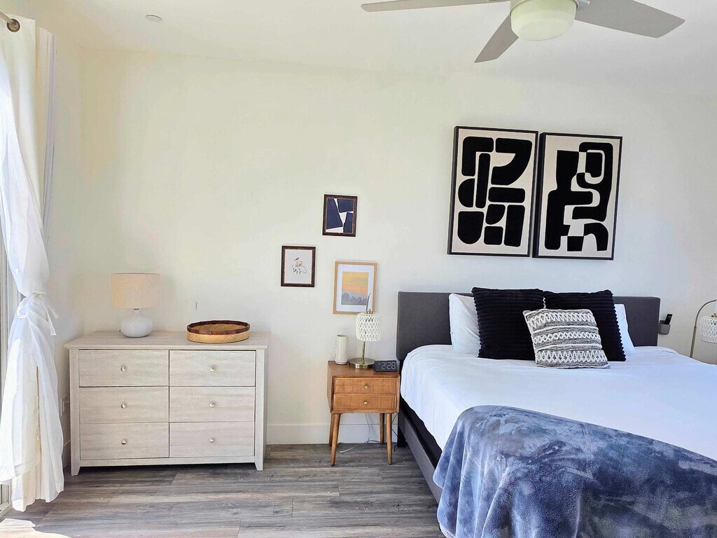 Feel at home in this recently constructed apartment that complies with ADA standards. Located around all the entertainment that University Heights offers, this apartment is on the three-story of a five-unit apartment/commercial building. This open-layout apartment features 10-foot ceilings that create a light, bright, and airy ambiance. The fully stocked kitchen has stainless steel appliances and a smart Samsung refrigerator. Enjoy the convenience of a washer, dryer, and iron, as well as smart TVs in the living room and both bedrooms. Secure, below-ground parking and elevator access are available. Nestled in a vibrant neighborhood with unique boutiques, eateries, and a lively atmosphere, this apartment offers easy access to major thoroughfares. With a walking score of 87, plenty of activities are within reach. San Diego Zoo, Balboa Park, Old Town San Diego, Little Italy, Seaport Village, Mission Beach, Pacific Beach, La Jolla Cove, SeaWorld San Diego, Torrey Pines State Natural Reserve, LEGOLAND California and Disneyland Park are all within a short drive. Khachapuri, a Georgian food restaurant, offers delivery right to the unit. Pets are not allowed. For anything outside of the neighborhood, a vehicle or Uber is recommended. Guests may have packages delivered to the property during their reservation dates; however, coordinating deliveries for when you are on-site to receive them is strongly advised, as the host cannot be held responsible for any packages that are lost, stolen, or damaged prior to or during your stay. Includes a dedicated workspace and high-speed Wi-Fi. Registration Number: STR-06673L [SI]