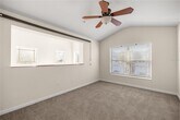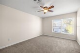 Enjoy maintenance-free living in this large 2-bedroom, 2-bathroom condo with an office (1,826 sqft under AC). This bright and airy end unit features extra windows, fresh paint, newer flooring, a high cathedral ceiling, an open floor plan, and a breakfast counter. The spacious master bedroom includes a walk-in shower and dual sinks. Relax on the large lanai with a partial lake view. The resort-style community offers a pool, gym, tennis, basketball, soccer, and beach volleyball fields, along with endless walking trails through Fore Ranch.