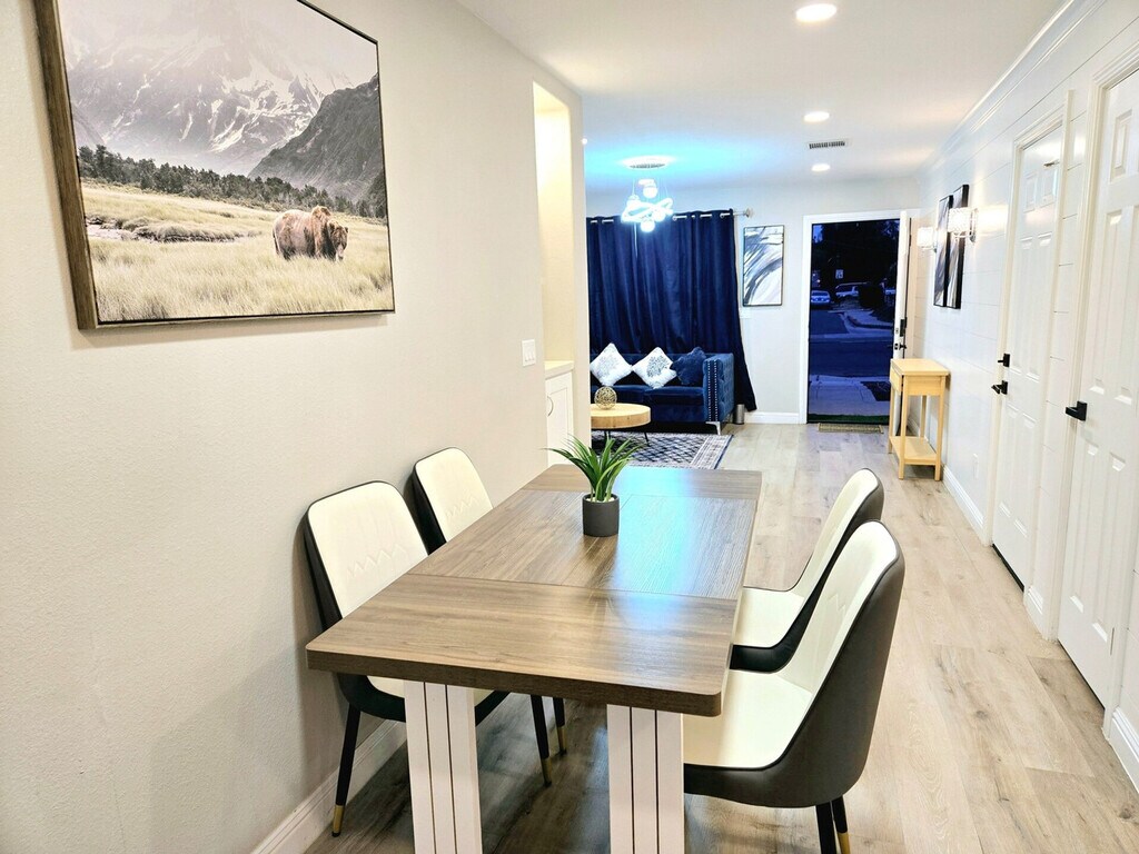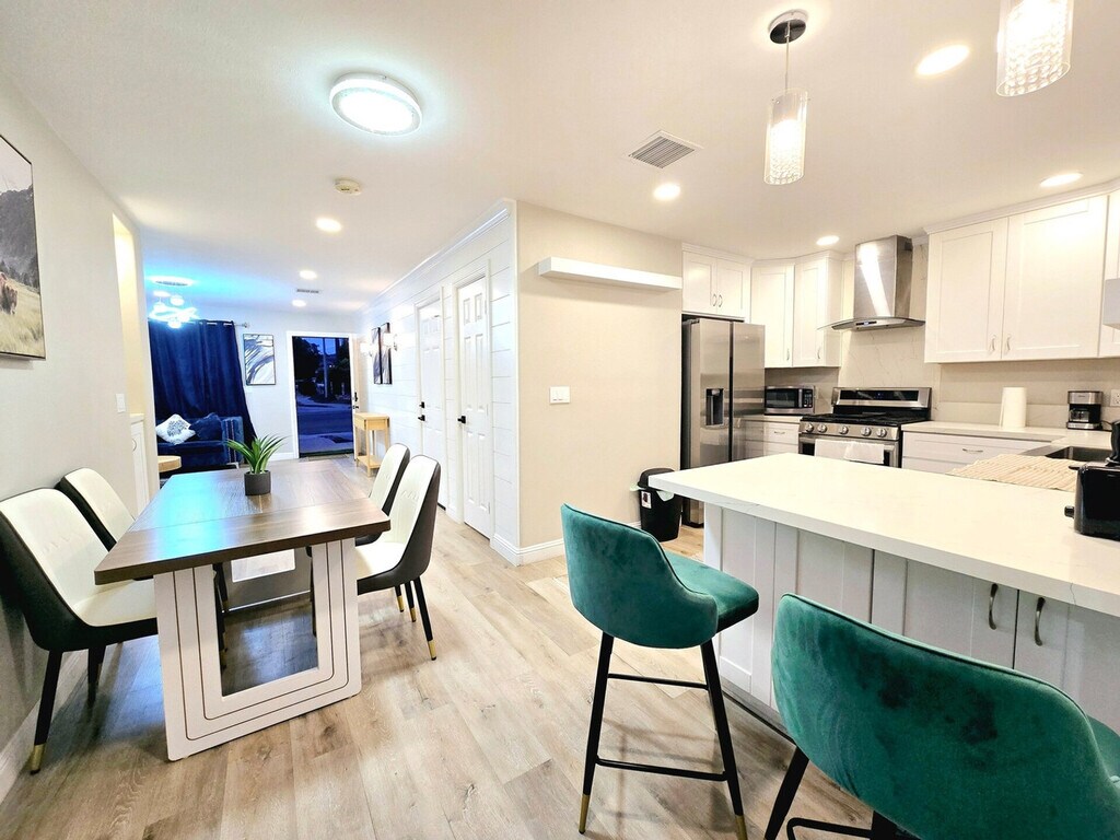 The advertised rate of $8,054/month is the lowest available price, based on a 1 month(s) and 2 day(s) stay with a move-in date of February 22, 2026. Rates vary depending on the duration of stay, season, and other parameters. For exact pricing and additional pricing components, please visit our website and enter your desired move-in and move-out dates. The rate is applicable when billed upfront; it can be higher if billed in multiple payments. Feel at home in this spacious, recently renovated 3-bedroom home in Escondido, San Diego. This cozy and thoughtfully designed home offers spacious living areas, a fully equipped kitchen, and a private outdoor space. It includes Wi-Fi, a smart TV, and air conditioning. Car hire and free on-site private parking are available. This property is pet-friendly, charges may apply. Located 20 km from McClellan-Palomar Airport, this home is near attractions such as San Diego Zoo Safari Park (11 km) and Balboa Park (50 km). Smoking is not permitted inside the house. Be mindful of noise levels, especially during quiet hours from 09:00 PM to 7:00 AM. Guests are not allowed without prior notice. No trespassing allowed on neighboring properties. Keep common areas clean and tidy, wash dishes promptly, and dispose of trash in designated bins. Respect each other's privacy and personal belongings. Lock doors and windows when leaving the house or going to bed. Report any maintenance issues or safety concerns promptly. Conserve energy and water whenever possible. Discuss concerns or conflicts calmly and respectfully. Use chat or a designated communication method for house-related matters. [SI]