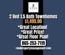 The Rand 938 Community is conveniently located off 5 separate streets in Halls. Nearby your new home is the Halls shopping center, Starbucks, Chic-fil-A, Walmart, and many other shopping locations. The Happy Holler and Old North Knoxville are nearby on Central Ave and Downtown Knoxville and the UT Campus is only a 20-minute drive on the Interstate. You are conveniently located near Emory Road in Powell with dozens of restaurants and great things to do! Knox County Schools provide 3 exceptional schools Halls Elementary, Halls Middle, and Halls High School all within a 5-mile radius. Rand 938 is a community made up of 52 Units all 2 Beds/ 1.5 Bath Apartments. These units are a townhouse side-by-side duplex setup that delivers excellent privacy and an at-home feel. The kitchens come equipped with a fridge, stove/oven, W/D connections, and dishwasher. All appliances can be either black, white, or stainless steel. The flooring is a combination of carpet and high-quality luxury vinyl plank, with a fresh coat of modern gray paint on the walls and white trim throughout! If you're moving to Knoxville, TN, this great property could be your new home. End your search and get moving. Let us assist you! Contact us now to discuss the next steps! $495.00 MOVE-IN ADMIN FEE NON-REFUNDABLE (Normally $495) Leasing Office Location: 5004 Willoway Drive, Knoxville, TN 37912 Amenities • Washer and Dryer Connections • Ceiling Fans Details • Beds/Baths: 2 BR/1.5 BA • Square Feet: 1,040 • Townhouse - Side by Side Duplex Rental Terms • Application Fee: $65.00 (Non-Refundable) • Short Term Leases Available (Short Term Fee's Apply) Pet Policy • $395.00 One-Time non-refundable fee AND $25.00 monthly fee, per pet • Cats allowed • Dogs allowed • 35lb Weight Limit Upstairs • 75lb Weight Limit Downstairs • SNAKES & INSECTS NOT ALLOWED Call For More Information!