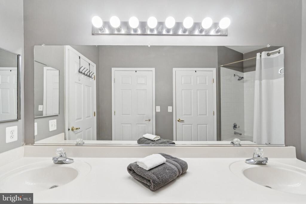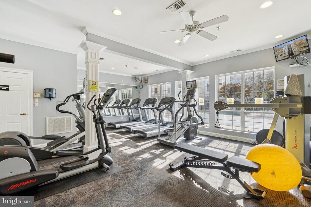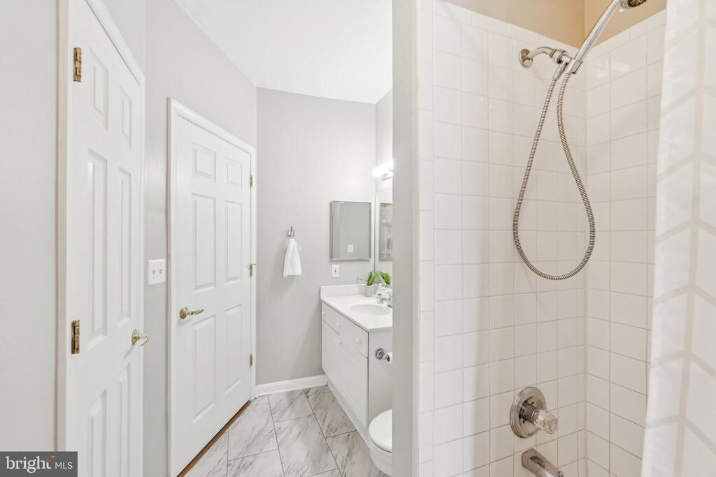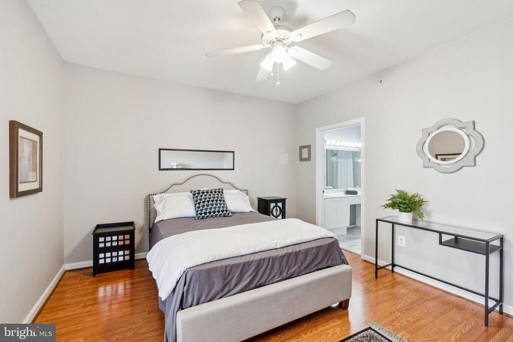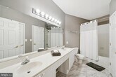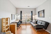 Top-floor condo in The Palazzo at Park Center featuring vaulted ceilings, laminate floors, and an open layout filled with natural light. The kitchen offers granite countertops, stainless steel appliances, and a breakfast bar overlooking the dining area. Enjoy a gas fireplace, oversized private and covered balcony, and spacious primary suite with two walk-in closets and a soaking tub in the primary bath. Second bedroom has direct access to a full bath and has an additional oversized closet. Community amenities include a pool, fitness center, courtyards, and garage parking. Minutes to Shirlington Village, The Pentagon, Amazon HQ2, and I-395 — the perfect rental for professionals seeking upscale, convenient living.