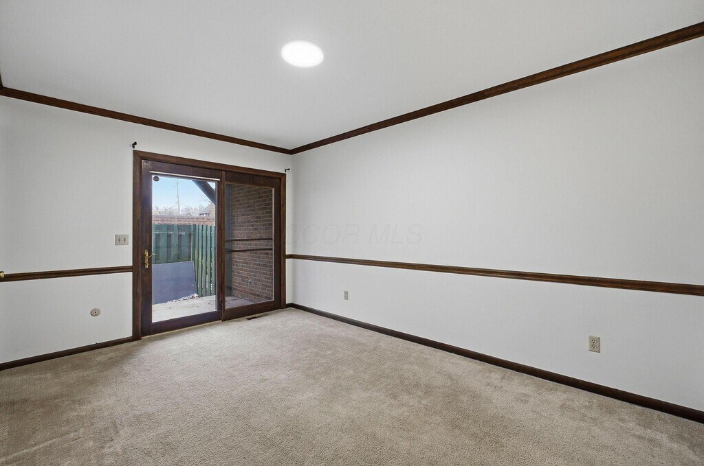 Available for immediate possession! Charming 1 level end unit condo with 3 bedrooms and 2 bathrooms in Upper Arlington schools. Upon entry, you are greeted with original slate flooring and fresh neutral paint throughout. Large family room with floor-to-ceiling windows and all-brick wood-burning fireplace. All-white kitchen with black appliances opens to dining room with sliding glass doors that lead to private brick patio. Large primary en suite with walk-in closet. Two additional bedrooms and second full bathroom complete the first level. Expansive finished basement creates flexibility within the floor plan and could be used for office, exercise or recreation. Lower level laundry is included. Conveniently located near Greensview Elementary School, Sunny 95 park plus Henderson and Kenny Road shops and restaurants.