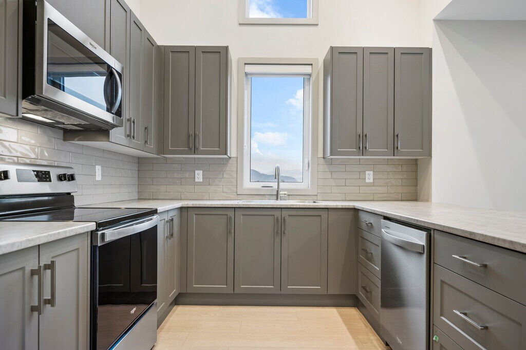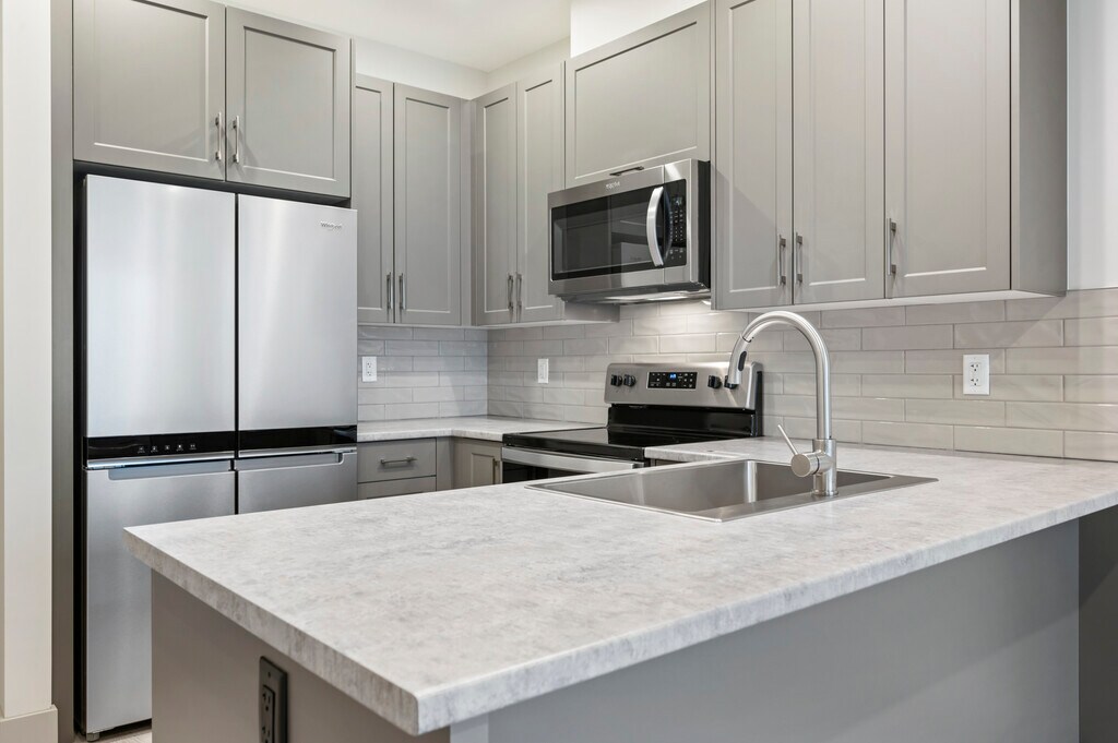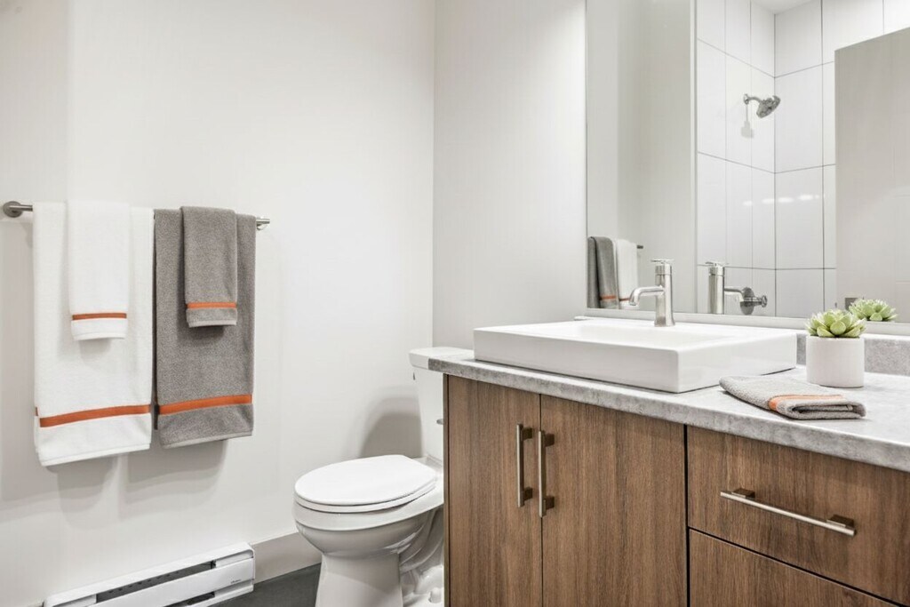 2 Bedroom Apartments BIG NEWS PETS WELCOME! Buildings 1, 2 & 3: One cat is welcome floors 3-6 Building 3: One small dog (40 Lbs. or less) is allowed Vantage Apartments are NOW RENTING! Viewings are available immediately, but you don't have to wait—explore our virtual tours today and envision your new home at Vantage. 3 Brand new rental buildings to choose from! C1 plan 2 bedroom 1 bathroom Starting at $2,000 - $2,075/ month Experience the ultimate in comfort and convenience with our spacious 2-bedroom apartments, available in two versatile floor plans. Each home is thoughtfully designed with modern finishes and premium features: • Concrete-inspired laminate counters in the kitchen and bathroom • Whirlpool appliances, including a dishwasher, microwave, fridge, and stove • In-suite stacked washer and dryer for added convenience • Tile flooring in the bathroom and durable laminate flooring throughout • Private balcony for relaxing or entertaining Choose the layout that suits your needs and elevate your living experience. Contact us today to schedule a viewing and discover your perfect 2-bedroom home. Photos may not be exact unit.
