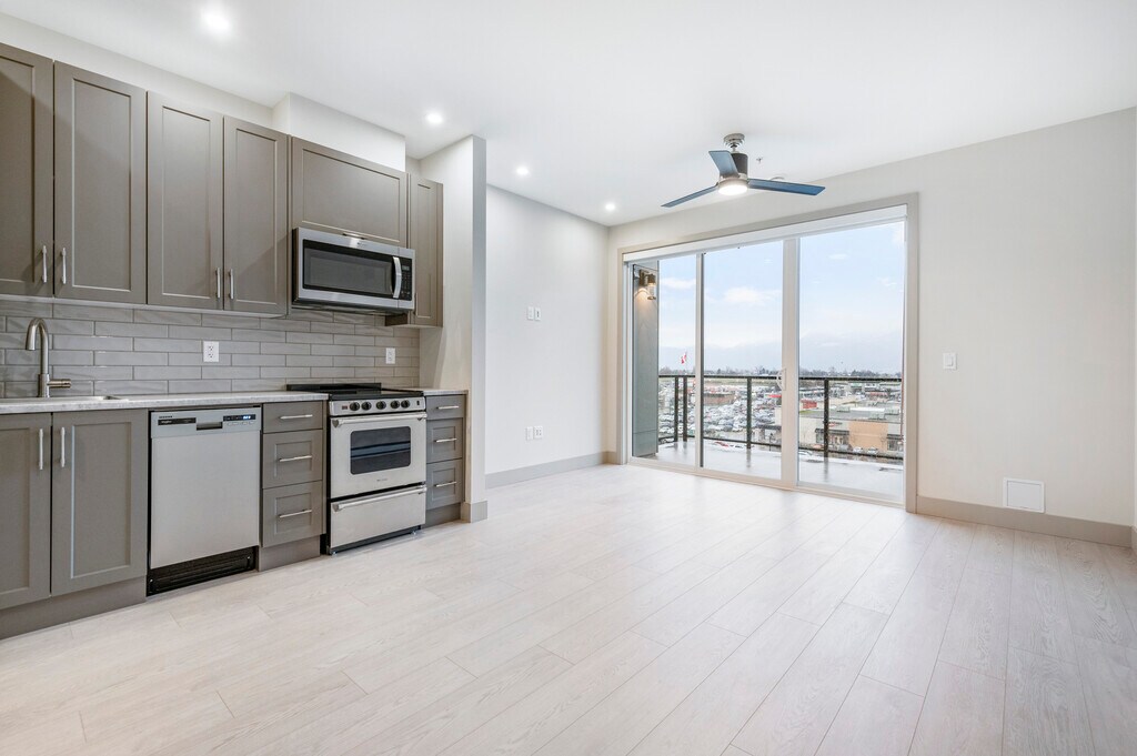 STUDIO A1 BIG NEWS PETS WELCOME! Buildings 1, 2 & 3 Cats are welcome floors 3-6 Building 3 Small dogs are welcome too! Vantage Apartments are NOW RENTING! Viewings are available immediately, but you don't have to wait—explore our virtual tours today and envision your new home at Vantage. 3 Rental buildings are available so choose your perfect suite! Rents starting at $1390 -1520 This elegant 430 sq. ft. studio apartment offers a seamless blend of comfort and modern design. This unit includes: • Concrete-inspired laminate counters in the kitchen and bathroom • Whirlpool appliances, including a dishwasher, microwave, fridge, and stove • In-suite stacked washer and dryer for added convenience • Tile flooring in the bathroom and durable laminate flooring throughout • Private balcony for outdoor relaxation Contact us today to schedule a viewing and make this sophisticated studio your new home.