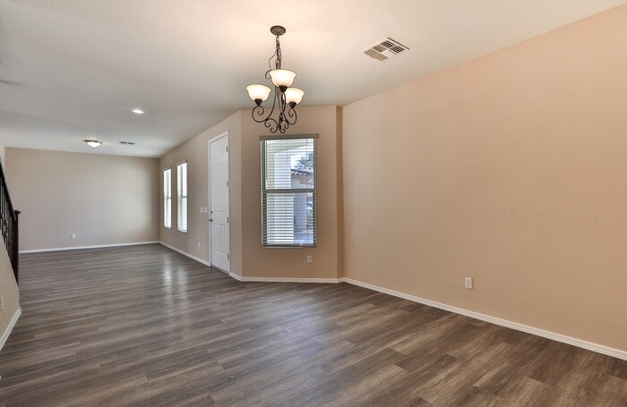 Don't let this one pass you by! Come take a look at this beautiful, spacious 3070sq home offering a living room, family room, formal dining, eat in kitchen area and a large loft upstairs. There is one bedroom and full bathroom located on the lower level. Master bedroom and other 3 bedrooms with full bathroom are upstairs. Newer interior paint and newer flooring with a new range were just installed. Located in Maricopa Meadows. Close to parks, schools, restaurants and shopping. This property is available now for immediate move in. $60 for the 1st 2 adults application fee, $200 non refundable admin Fee. Approved pets will require a $250 non refundable per pet fee plus $25.00 per pet rent. Schedule a time to take a look and contact Kim Tracy with questions at . This property allows self guided viewing without an appointment. Contact for details.