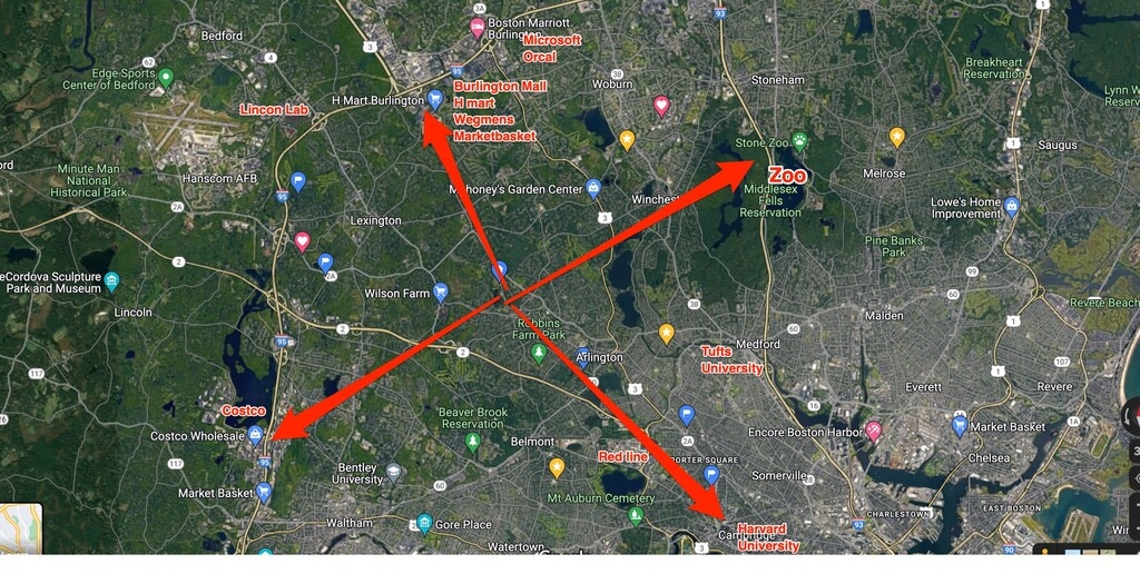 Time and distance from 46 Lowell St.
