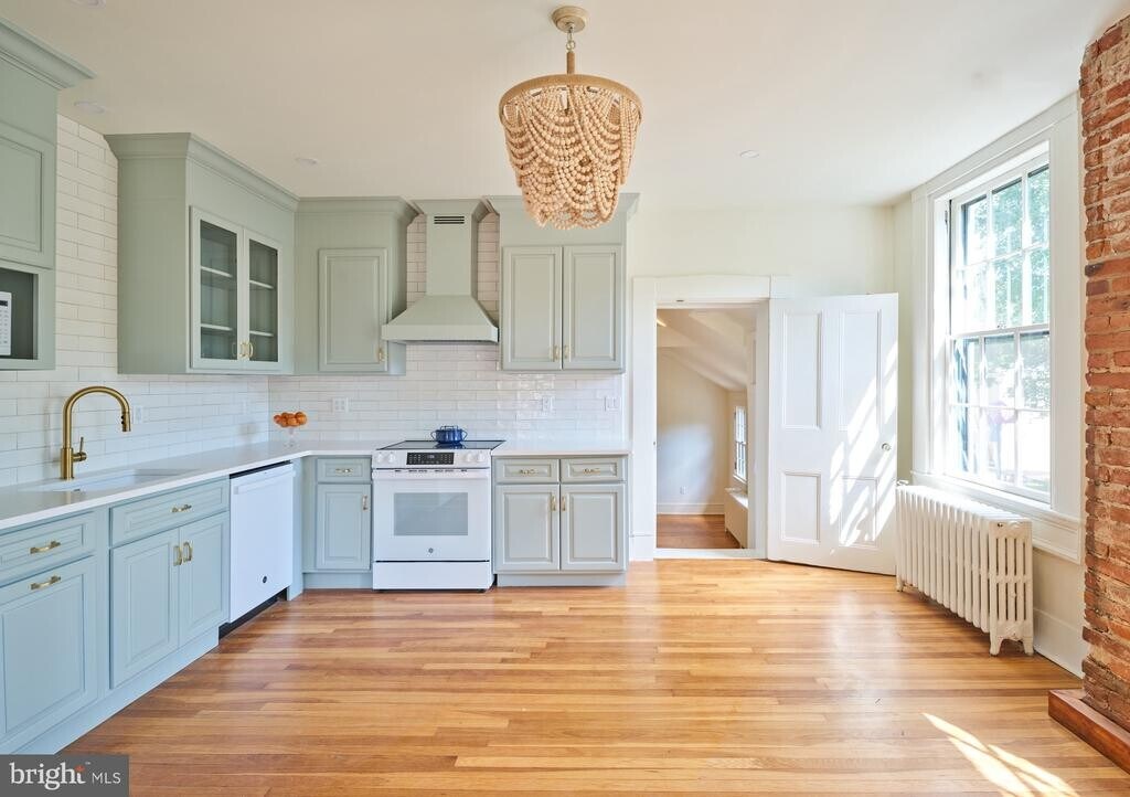 Discover the perfect blend of vintage charm and modern comfort in this award-winning renovation, located in a leafy residential neighborhood just blocks from the heart of Lambertville. This landmark 19th-century brick building offers a spacious one-bedroom apartment filled with character. Located on the second floor, this apartment features high ceilings, exposed brick, wood floors, and vintage architectural details including a decorative fireplace and antique hardware, combined seamlessly with all-new updates. The gorgeous kitchen has brand-new appliances, expansive quartz countertops, abundant cabinetry, a convenient pantry with antique door, and an elegant tile backsplash. Just off the serene bedroom with its high ceilings, exposed brick wall and wood floors is a walk-in closet/dressing room with a large antique armoire repurposed as a generous closet. The large ensuite bath has fabulous vintage fixtures, a stylish new heated tile floor and ample linen closet. Residents of this exceptional building enjoy a gracious shared foyer, washer and dryer in the building, one parking space, and access to a lovely shared patio. The location is ideal—just blocks from Lambertville’s vibrant downtown of restaurants, cafés, shops, and boutiques. Stroll across the bridge to lively New Hope or explore the nearby towpath for hiking and biking. With easy access to Princeton (16 miles), Philadelphia (46 miles), and New York (66 miles to Holland Tunnel), this home offers both charm and convenience in desirable Lambertville.