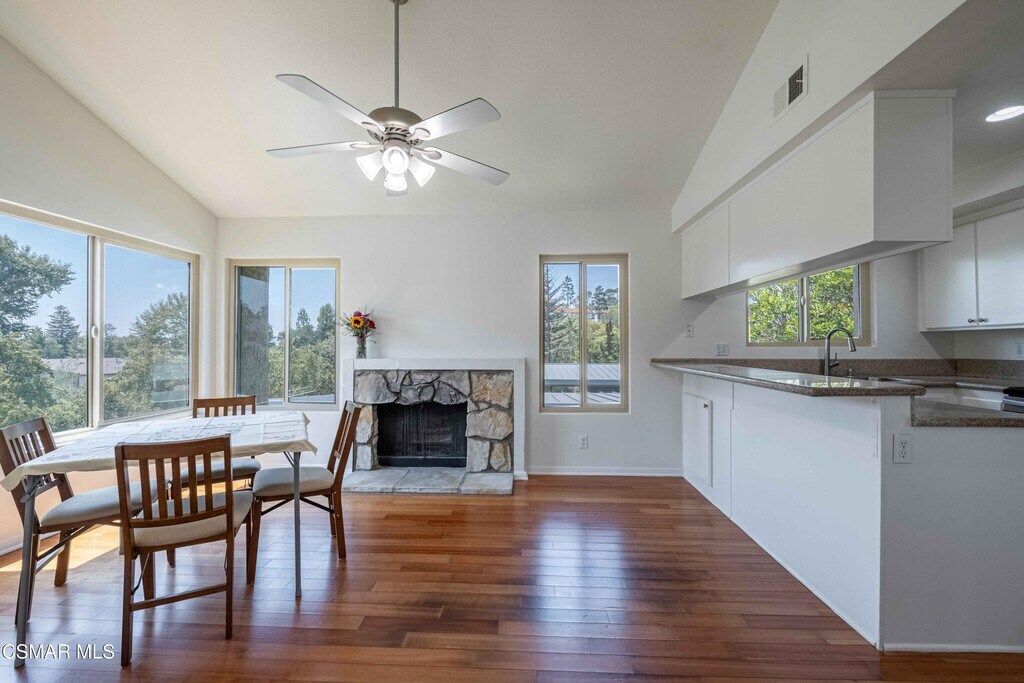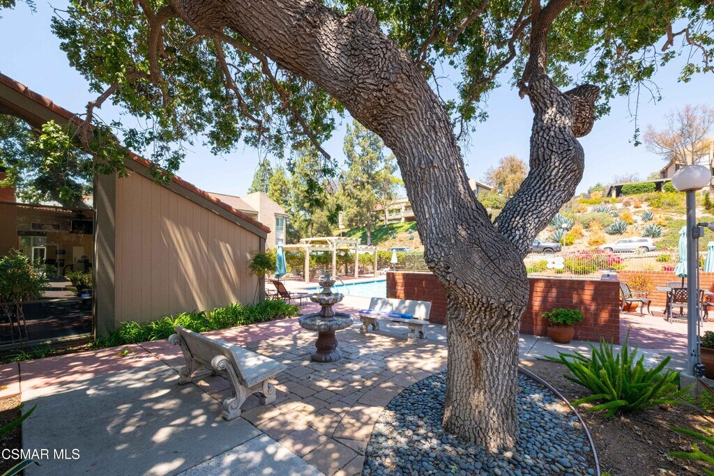 Live your dream! Simplify your life. Carefree, resort style living right in the heart of the beautiful community of Thousand Oaks. Oaknoll Villas, is a picturesque 55+ neighborhood conveniently located near shopping, restaurants and entertainment. This penthouse end unit enjoys a premier location with dramatic high ceilings and no one above you--a rare find!Step inside to discover lovely wood floors in most rooms, light-filled spaces, and neutral tones that create a warm, inviting ambiance. The cozy fireplace adds charm, while all-new windows and a sliding glass door open to your private balcony, perfect for morning coffee.The open-concept floor plan seamlessly connects the kitchen and living room, ideal for entertaining or relaxing. Enjoy the convenience of in-unit private laundry, included with the home.Residents of Oaknoll Villas enjoy lots of fun amenities including a pool and spa, clubhouse with a spacious community room, banquet hall with full kitchen, library and reading lounge, shuffleboard, outdoor BBQ area, cable TV, internet, and more.You'll love the unbeatable location--just minutes from The Oaks Mall, fine dining, and the Civic Arts Plaza, offering top-tier performances and concerts.Experience why Thousand Oaks is known for its lovely scenery, friendly neighbors, mild climate, and thoughtfully planned community design.Don't miss this one--come see why life at Oaknoll Villas is so special!