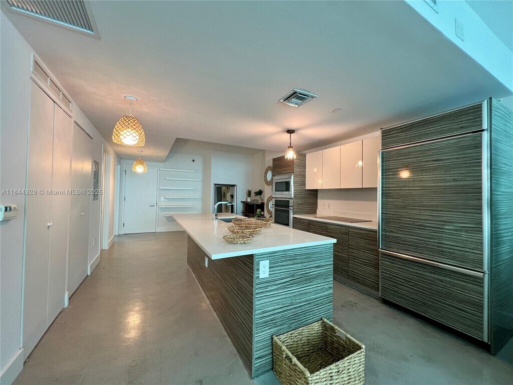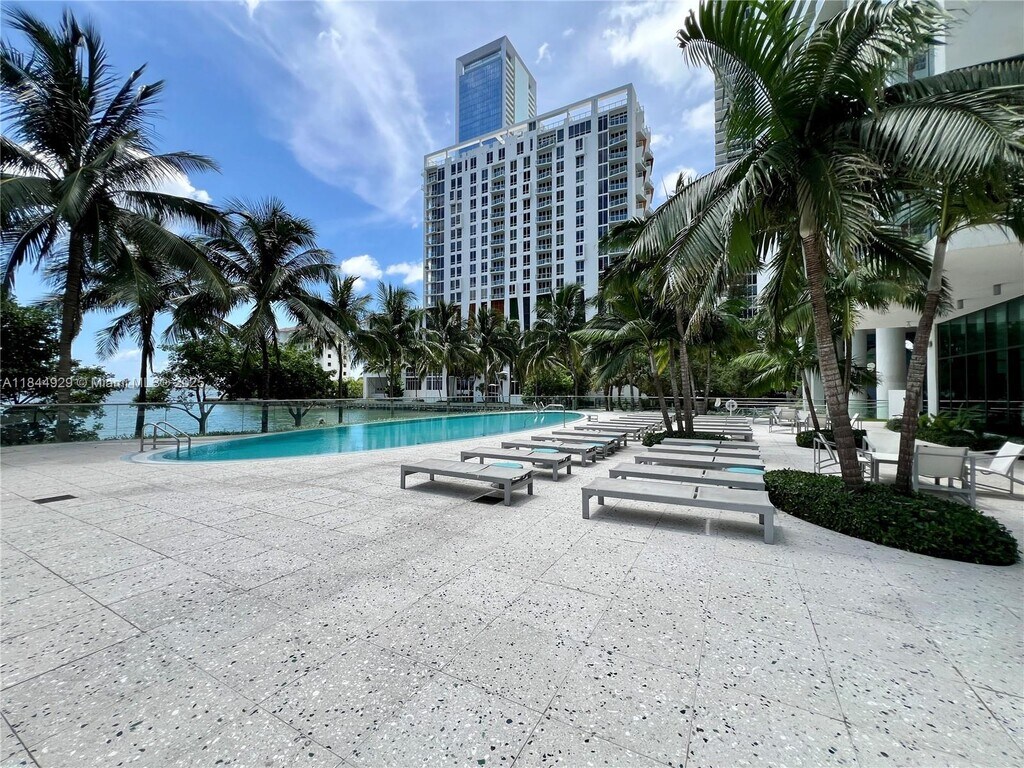ICONIC upgraded 2 bedroom unit with private elevator foyer and breathtaking bay views. Features porcelain tile floors, high-end kitchen with built-in appliances, ‘Aqua Tru’ water filter, and 4 custom cabinets. Enhanced lighting throughout, custom closets, and unique additions like glass doors in the secondary bathroom, custom washer/dryer and A/C doors, and a TV mount with storage. Huge terrace with electric blinds. Resort amenities include a pool, tennis courts, party room, business center, 24h concierge, and more. Prime Edgewater location, walkable to Wynwood, Midtown, Design District, shops, and restaurants. Live modern luxury!