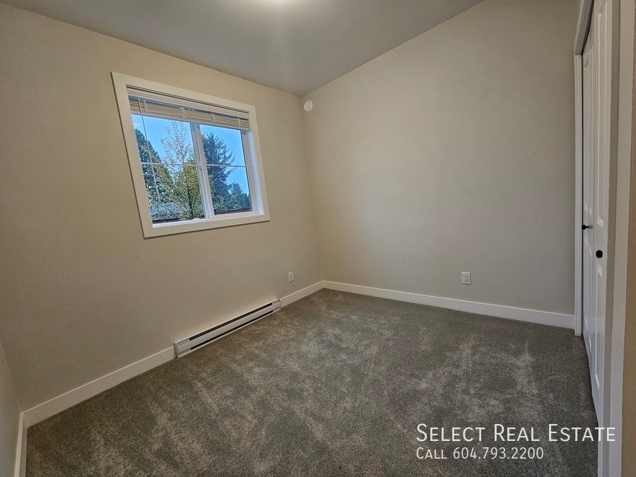 Address: (Basement) 5-46058 Bonny Avenue Date Available: December 1st, 2025 Site: www.selectrealestate.ca/property-management Located in a premier development by Kabo Properties, renowned for their quality builds. Nestled near all levels of schools, amenities, and shopping, BONNY ESTATES ensures convenience at every turn. Its proximity to the new District 1881 adds a touch of modern elegance, creating a vibrant community atmosphere. With less than a 10-minute drive to Highway 1 access, BONNY ESTATES provides seamless connectivity. Come and see this gorgeous 2 bed suite! Lease Details • Lease duration: 1 Year • Deposit: ½ Months Rent. • No Smoking Property Details • Bed: 2 • Bath: 1 • SQFT: 900 Pet Details • Pets(Yes/No):No • Type Allowed: N/A • Number: 0 • Size Restriction: N/A Exterior Details • BBQs allowed(yes/no): Yes • Parking type and how many: Street Parking • Yard Usage: Shared • Yard fully fenced: Yes • Shed Or Shop Usage: No Appliances Included • Fridge: Yes • Range: Yes • Dishwasher: Yes • Microwave: No • Washer/Dryer: Yes • Shared Laundry: No • Pay Laundry: No • Fireplace: No • Air conditioner: No • Standalone freezer: No Utilities • Gas: 30% Tenant • Hydro: 30 Tenant • Internet/Cable: 100% Tenant • Water, Sewer, Garbage: Included Utility Type • Heat Source: Baseboard - Electric • Septic/Sewer: Sewer • Water Source: City • Tenant Responsible for Septic pumping: No Strata • Age Restriction: None • Storage Locker: No • Move-in/out Fee: None • Move in Scheduling: N/A