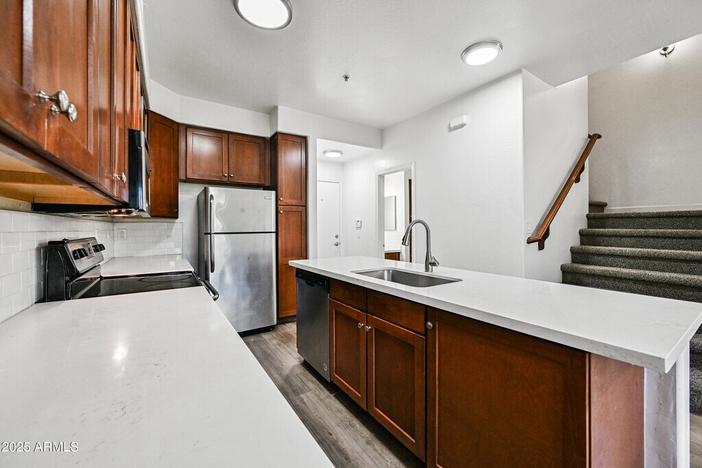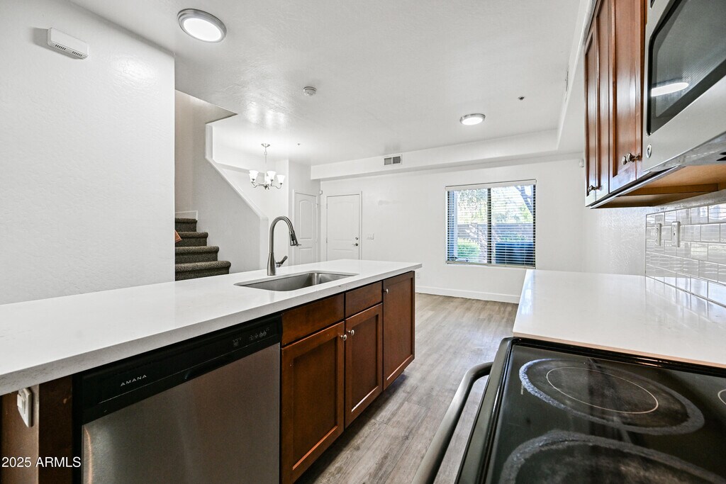 Beautiful 2 bedroom,2 bath condo. All tile. Newer appliances including washer/dryer. Walk in closets,extra large covered patio. Close to schools. 1 covered parking. Community pool. Upstairs unit corner unit. All tile floors. Freshly painted.