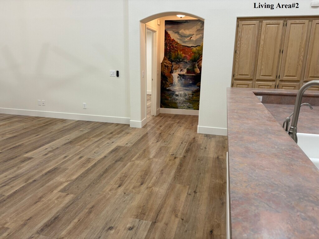 This spacious, newly refreshed 2,105 sq ft single-level home features 3 bedrooms and 2 full bathrooms in a highly desirable Gilbert neighborhood, just steps from a park. The home has been recently updated throughout, including: Fresh interior paint Brand-new modern wood-look luxury vinyl plank flooring Renovations are currently underway, with the kitchen being upgraded to create a more modern, contemporary look. The thoughtfully designed split floor plan offers vaulted ceilings, an open and airy feel, and two separate living areas, providing flexible space for everyday living or entertaining. The home also includes a 3-car garage with built-in cabinetry, offering excellent storage and functionality. Adding a unique and welcoming touch, two beautiful hand-painted wall artworks inspired by Sedona bring warmth, natural charm, and a serene ambiance to the home. Outside, enjoy a landscaped backyard with grass, mature trees, and a covered patio, creating a peaceful and private outdoor retreat. Also there is neighborhoods park in front of the house. With its prime location, spacious layout, and modern upgrades, this home offers comfortable living just one mile from downtown Gilbert.