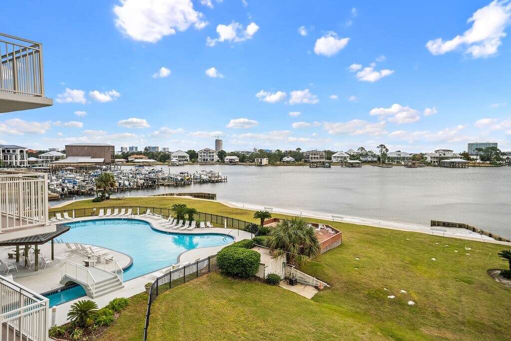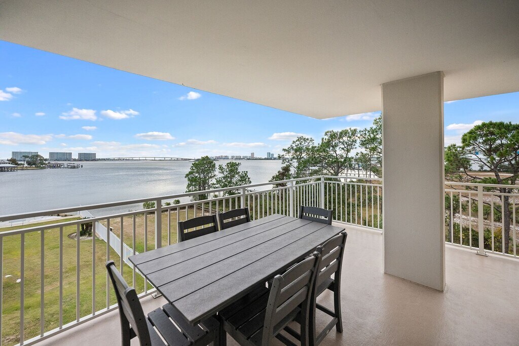 Fantastic,unobstructed views,from this furnished 3 bedroom,2.5 bath unit situated on the fourth floor corner unit at Back Bay condominiums. Complex is located on the north side of Terry Cove off Canal Road in Orange Beach. There are gorgeous views of the bay,where you'll often see dolphins,particularly in the morning and evening. You can easily kayak to the Tiki Bar or to the beautiful island,directly in front of the condo,toward the pass into the gulf. This is the quiet side of Orange Beach and you'll love the peace. There is a small sandy area for playing,a wonderful big pool,and a deck area,over looking the bay. No boat slip nor boat trailers are available for tenants. Pets are allowed but with owner approval and non-refundable pet deposit.