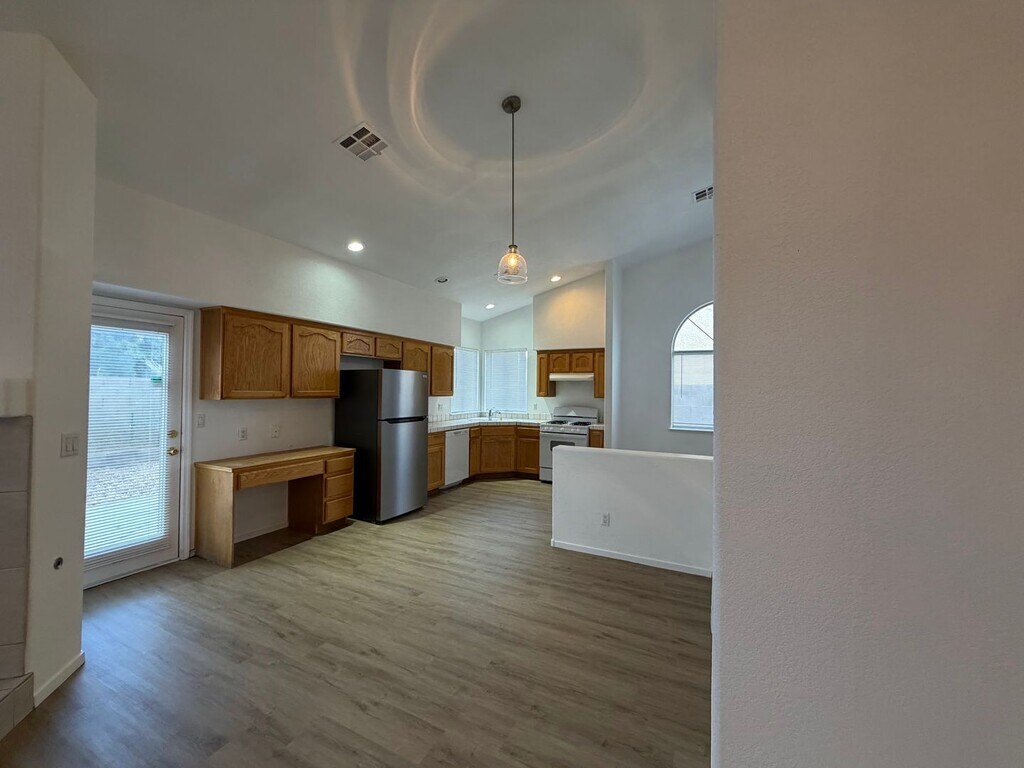 This inviting 3 bed, 2 bath single-story home has been fully refreshed with brand new flooring, new carpet, updated appliances, and fresh interior paint. The layout is bright and comfortable, and both the front and backyard feature low-maintenance landscaping for easy living. A truly move-in-ready home! Contact Khristina today for more information and to schedule your private showing! Application - $100 Admin Fee - $150