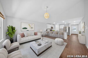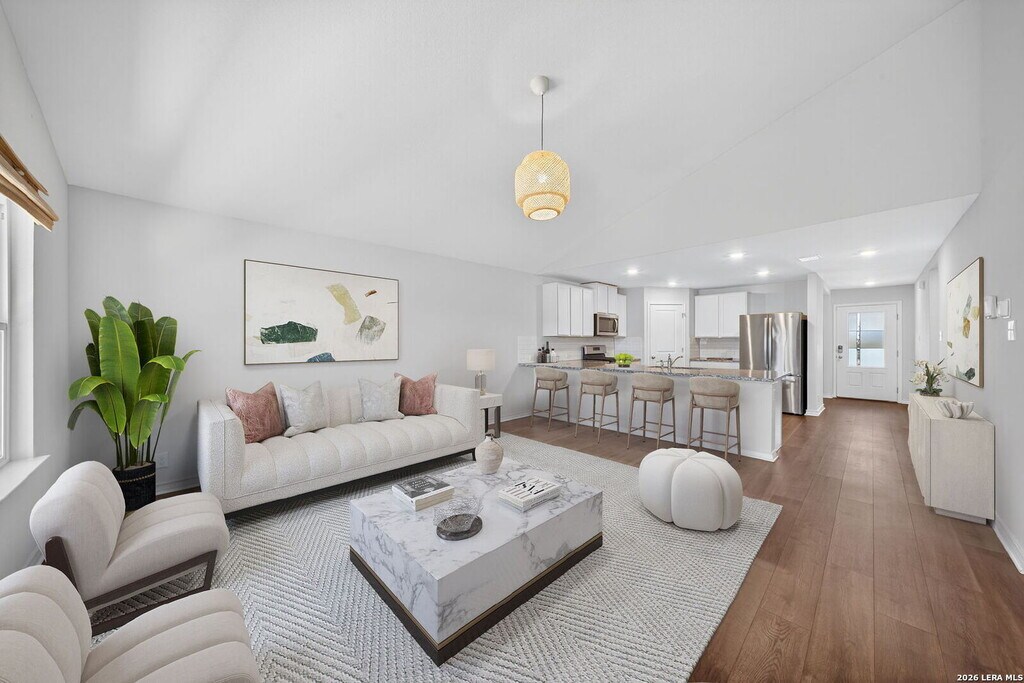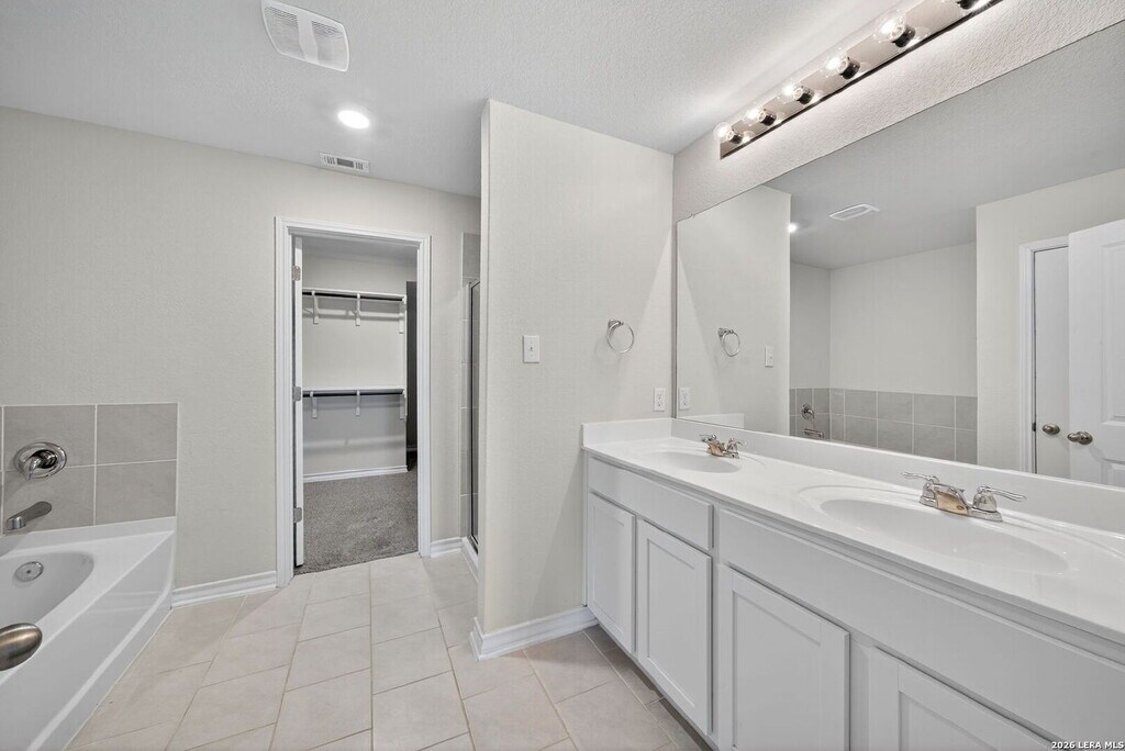 Step into a beautifully designed home where modern comfort meets timeless style. The journey begins on an inviting covered front porch, leading to an elegant dining room that sets a sophisticated tone for memorable gatherings. The heart of the home is an open-concept living area, where a large kitchen with a breakfast bar flows effortlessly into a cozy family room. From here, step out to the covered patio, a perfect extension of your living space for seamless indoor-outdoor entertaining. Relax and recharge in the luxurious primary suite, a private retreat complete with a spa-like ensuite featuring dual vanities and a separate garden tub and shower. Abundant storage is provided by the large walk-in closet, and secondary bedrooms on the second level also include walk-in closets. The second floor boasts a massive flex space, ideal for a game night, home theater, or a private second living area. This home isn't just a property; it's a lifestyle. The community offers resort-like amenities, such as a swimming pool, park, and clubhouse. With premier shopping, dining, and entertainment, including Sea World, only minutes away, you'll have everything you need right at your fingertips. For showings, please call