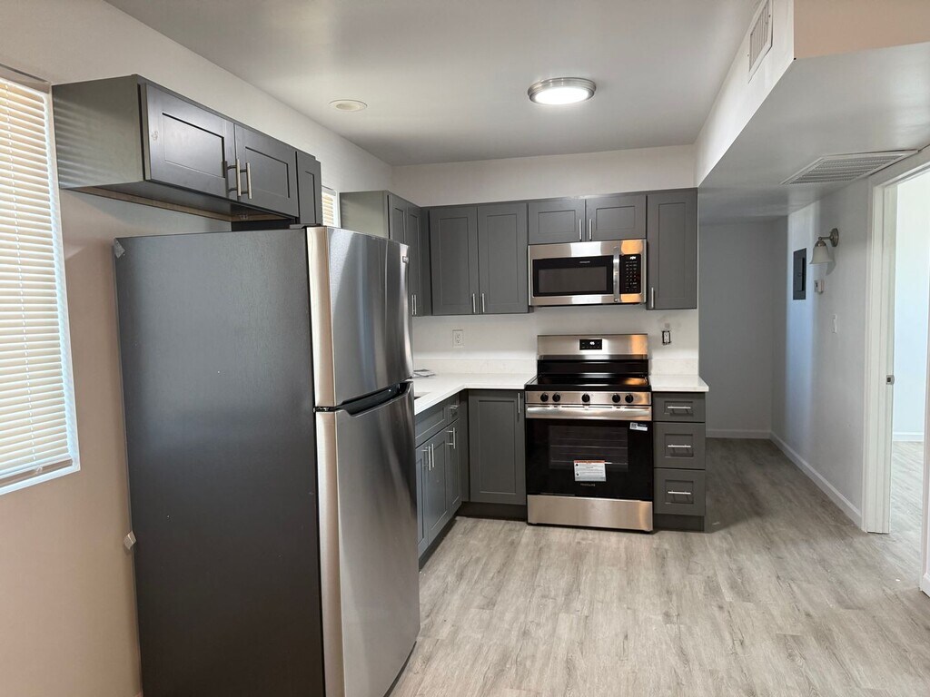 Michael BohlmanThis large open floor plan Two bedroom Phoenix apartment is ready for move-in. Has laminate flooring, new paint on the inside, new fans and light fixtures, new kitchen cabinets with quartz countertops, bathroom has a tub and shower combo with tile shower walls New Vanity,AC Unit everything is new. The second bedroom is smaller then the 1st.
