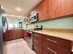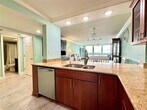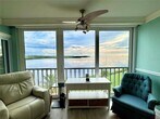 Beautiful waterfront condo with direct view of the Gulf of Mexico from almost every room. This unit has been updated and comes furnished. The kitchen has beautiful cabinetry with granite countertops,floor to ceiling pantry and extra storage. Front room has built in Murphy bed,mirrored closet and additional closet (hall closet was reconfigured to open into this room). No door but there is a privacy screen that can be lowered to enclose this room with guest bathroom to give it a "suite" feel. Guest bath updated with tall vanity and tub/shower. Great room has dining room with seating for 6 and living room with electric reclining sofa and char,large TV and sliding door providing AMAZING birds eye view of the Gulf of America. Watch the boat traffic and sealife frolic from the comfort of your own slice of paradise. French door access to the Primary Suite which offers a king sized bed,huge closet,en suite bath with walk in shower (glass doors),tall vanity and built in linen closet. One under building parking space and one assigned storage locker. NO PETS and NO SMOKING. Offered Furnished,if you want unfurnished we can always ask.