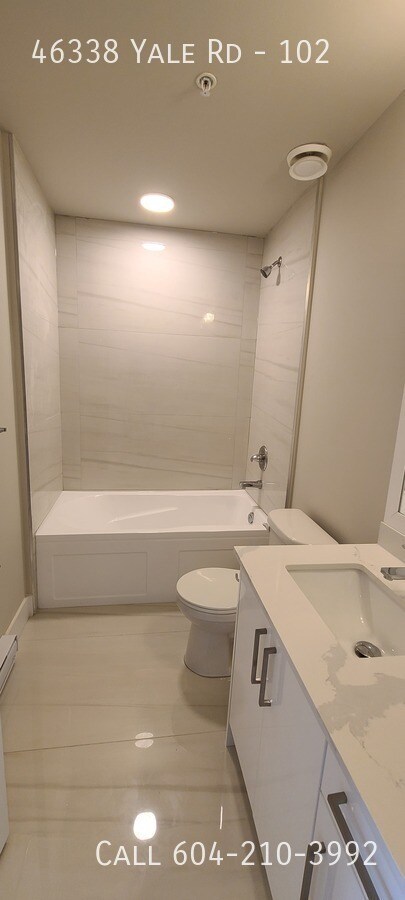 One Year Lease Security Deposit: Half Months Rent Pet Deposit: Half Months Rent There are only 4 units like this in the building. Enter right from the street or through the building. Main level features the kitchen and living area a bedroom and a full bathroom. Upstairs you will find the primary bedroom with walk in closet and ensuite. Two additional bedrooms, the main bathroom and a large den with a closet. **Photos of a similar unit** Please call Ace Property Management at - Ext-1 to book a viewing. Reference the address: "102-46338 Yale Road”