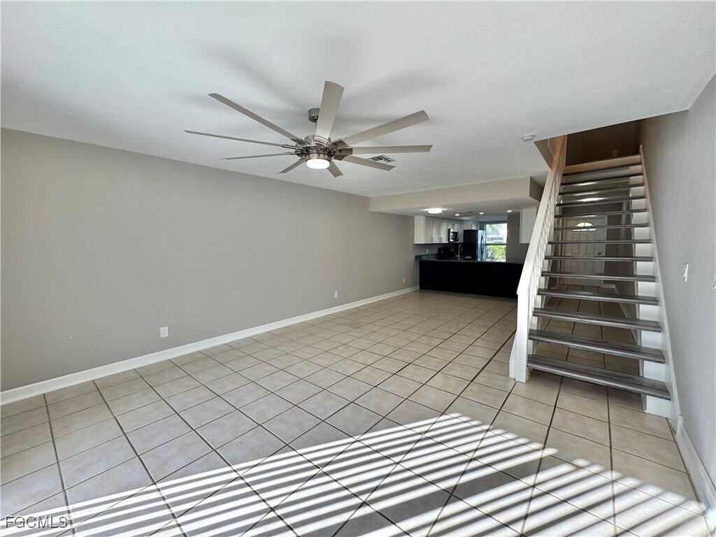 This updated 2-bedroom,2.5-bathroom townhome offers 1144 square feet of comfortable living space in the Cape Gardens community. The bright open floor plan features tile flooring throughout the main level,a large living and dining area,and sliding glass doors that lead to a private fenced patio perfect for relaxing or entertaining. The modern kitchen includes white cabinetry,granite countertops,stainless steel appliances,and a breakfast bar with ample space for seating. Upstairs,both bedrooms feature new plank flooring,generous closet space,and ceiling fans for added comfort. The primary suite includes an attached full bathroom,while the second bedroom has easy access to another full bath. A half bathroom is conveniently located on the main floor for guests,and the in-unit washer and dryer are located upstairs for added convenience. Additional highlights include updated fixtures,modern lighting,and a private outdoor storage room. Residents of Cape Gardens enjoy access to a community pool and beautifully maintained common areas. The location is ideal,just minutes from shopping,dining,and waterfront parks. With easy access to Cape Coral Parkway and Veterans Memorial Parkway,you’re only a short drive from the beaches,marinas,and downtown Fort Myers.