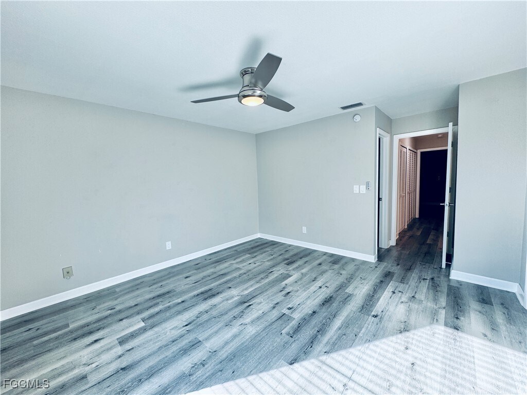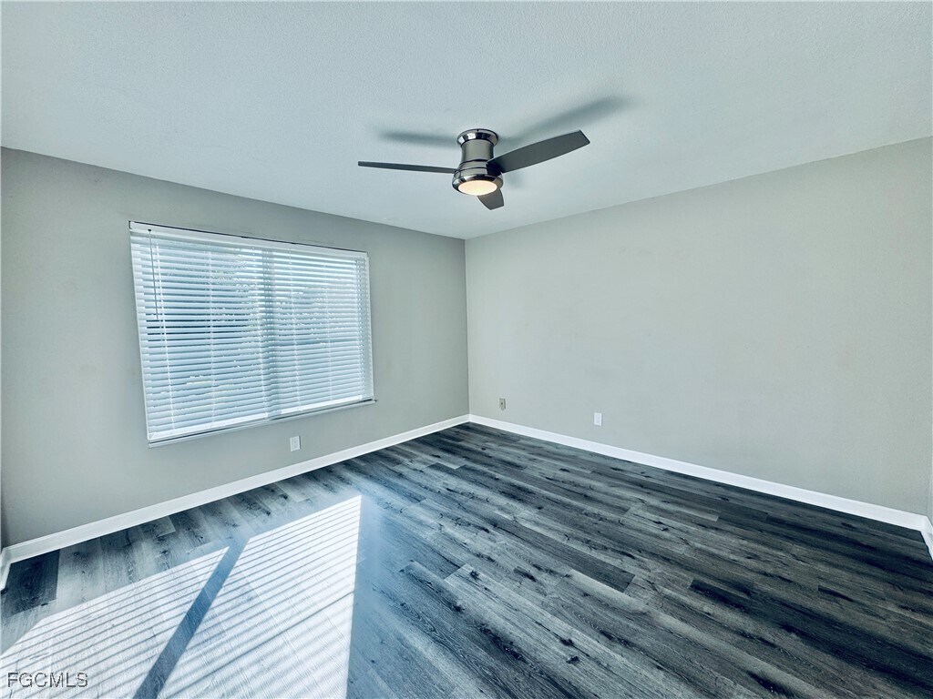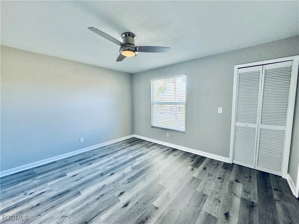 This updated 2-bedroom, 2.5-bathroom townhome offers 1144 square feet of comfortable living space in the Cape Gardens community. The bright open floor plan features tile flooring throughout the main level, a large living and dining area, and sliding glass doors that lead to a private fenced patio perfect for relaxing or entertaining. The modern kitchen includes white cabinetry, granite countertops, stainless steel appliances, and a breakfast bar with ample space for seating. Upstairs, both bedrooms feature new plank flooring, generous closet space, and ceiling fans for added comfort. The primary suite includes an attached full bathroom, while the second bedroom has easy access to another full bath. A half bathroom is conveniently located on the main floor for guests, and the in-unit washer and dryer are located upstairs for added convenience. Additional highlights include updated fixtures, modern lighting, and a private outdoor storage room. Residents of Cape Gardens enjoy access to a community pool and beautifully maintained common areas. The location is ideal, just minutes from shopping, dining, and waterfront parks. With easy access to Cape Coral Parkway and Veterans Memorial Parkway, you’re only a short drive from the beaches, marinas, and downtown Fort Myers.Plank Flooring