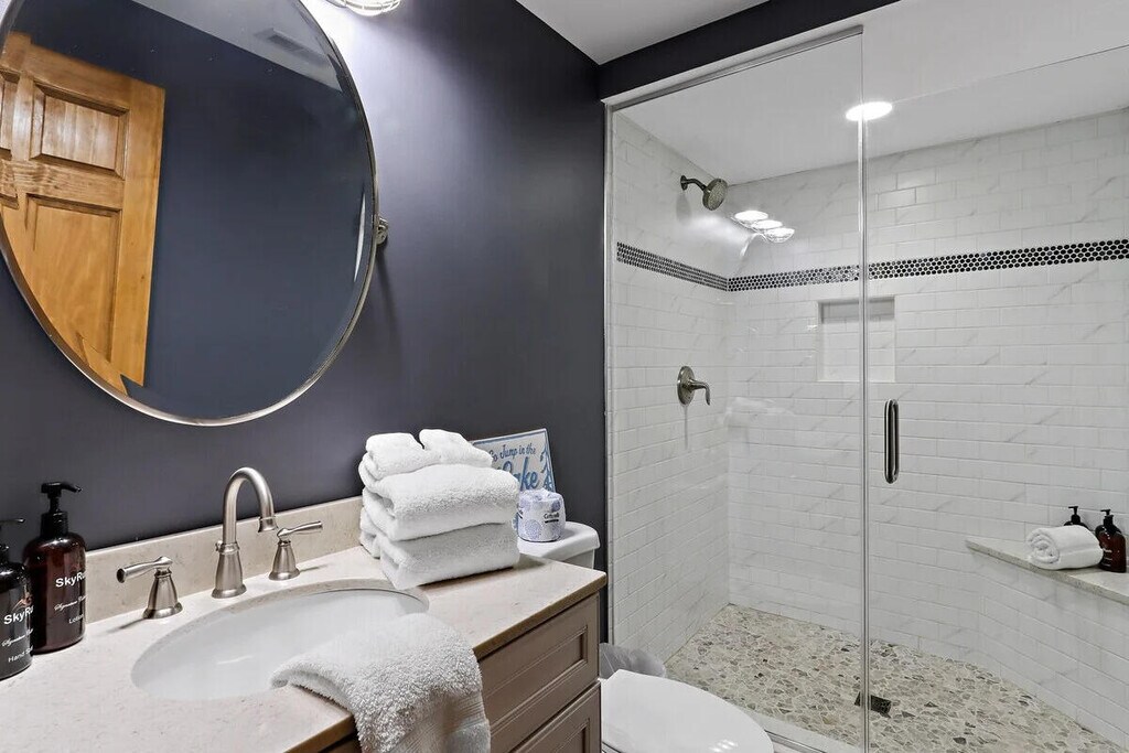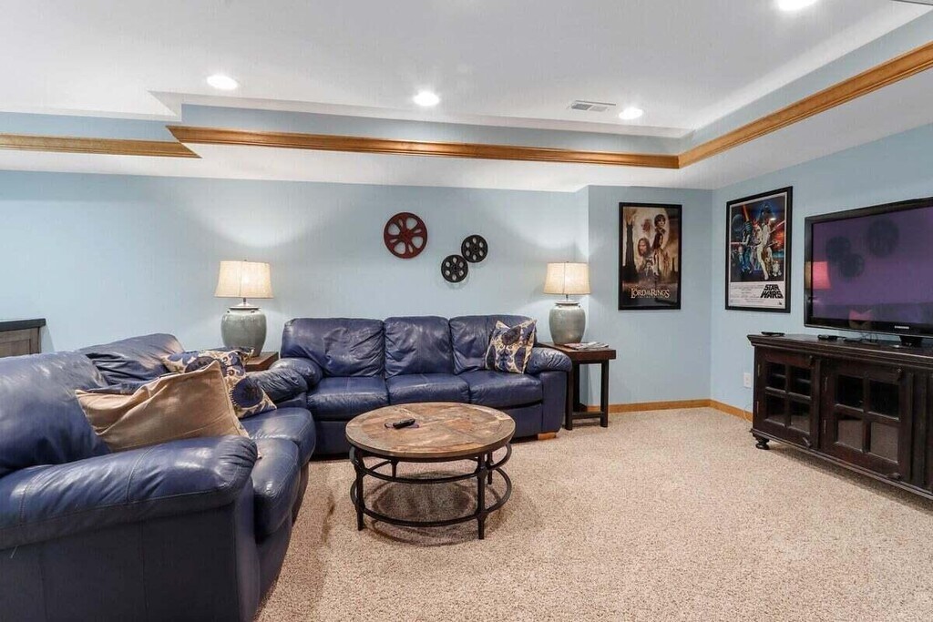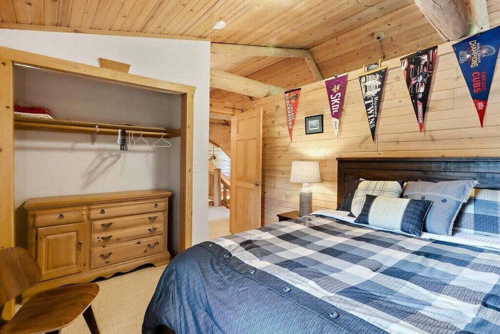Welcome to the Log Home at Lake Geneva, a beautifully renovated 4-bedroom, 3.5-bath retreat designed for relaxation, entertainment, and gathering. With space to sleep up to 12 guests, this home is perfect for family vacations, group getaways, or extended lake escapes. Inside, the open-concept layout features a soaring two-story family room anchored by a Santa Fe fireplace, cozy couches, and a mid-century recliner. The updated kitchen boasts stainless steel appliances and an oversized breakfast bar with seating for four, while the rustic dining table accommodates up to 12 for meals together. Entertainment is endless with a dedicated game room (ping-pong, shuffleboard, vintage video game table) and a private movie room complete with beverage center, Roku + Netflix, and a DVD library. The sleeping arrangements are perfect for groups, featuring a main-level king master suite with en-suite bath, two upstairs bedrooms with bunks and trundle beds, plus a lower-level queen bedroom with a full bath nearby. In total, the home offers 4 bedrooms and comfortably sleeps 12. Outdoors, enjoy a large front porch for morning coffee, a spacious stone patio with two BBQs for cookouts, a fire pit for evenings under the stars, and a premium swing set for kids. Located just a short walk (or 2-minute drive) to Fontana Beach, the home offers the best of lake life in a peaceful setting. Highlights: • 4 bedrooms, 3.5 bathrooms (sleeps up to 12) • Main-level king master suite with en-suite bath • Game room with ping-pong, shuffleboard & arcade table • Private movie room w/ beverage center, Roku + Netflix & DVD library • Spacious kitchen w/ breakfast bar + dining table for 12 • Stone patio w/ 2 BBQs, fire pit & swing set • Walking distance (2 min drive) to Fontana Beach • Large front porch for relaxing & gathering • 4 driveway parking spots Good to Know: • No street parking • HOA requires guest license plates & contact info • No access to HOA amenities (use nearby Fontana public beach with daily pass fee) Mid-Term Rental Rates: • October – April: $4,900.00/month • September & May: $7,750.00/month • June, July, August: $20,000.00/month Blending rustic character with modern amenities, the Log Home is perfect for family getaways or extended stays near Geneva Lake. Contact us today to learn more and secure your stay.