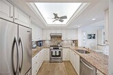 OPEN for the 2025-2026 SEASON! 90-day minimum. This beautiful 2 bedroom/ 2 bath,18th Floor condo offers stunning gulf views! No expense has been spared in this renovation,with top of the line furnishings,beautiful cabinetry,wood flooring,and quartz,through the kitchen and baths,gives this residence a crisp and clean feel. The Kitchen has upgraded appliances,quartz counters,bar,and opens through to the living area for easy entertaining. The Living Room has a couch,two swivel accompany chairs,and a contemporary leather recliner and a large-screen TV. The Dining area has a rectangular table,six chairs. The Master suite offers a king bed,large TV. walk-in closet,access directly to the lanai,and private bath. The guest bedroom has a queen bed,TV,walk-in closet,lanai,and bath with a walk-in shower. The lanai has a table and chairs to dine out. The Vistas has recently updated their amenities,pool/spa,outdoor area as of Fall,2018. They offer wonderful amenities,including 24-hour front desk attendant,state-of-the-art fitness center,social rooms,card room,extra storage and garage parking. A short boardwalk will take you from the pool deck to the white sand beach.