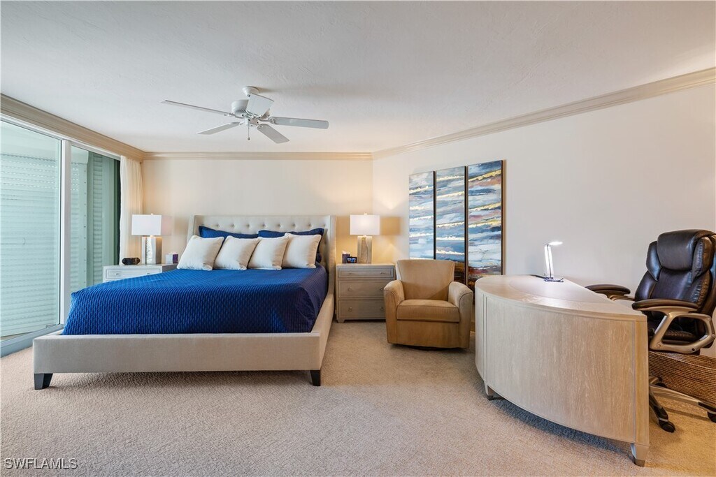 A place where picturesque sunsets,marine wildlife,and breathtaking views of the Gulf of Mexico are an everyday luxury. The gorgeous floor-to-ceiling windows provide you and your guests with unsurpassed,southern,western,and northern panoramic views of the Gulf of Mexico and its’ white,sandy beach. Decorated with a crisp décor,this 2-bedroom,den,3 bath,with travertine tile throughout,offers 2000’ of interior living space,2200’ total area,including the two screened lanai’s. Rarely does an “04” unit (largest floorplan) come on to the market. As you enter this residence,you are surrounded by views of the gulf,and will appreciate the open floor-plan. The living room has a cream-upholstered L-shaped couch,side chair in a celery green upholstery,entertainment center with TV,accompany tables/lamps,lovely art work,and touches of “Mackenzie Child’s” ceramics. The dining area has a table and seating for 6,offering views of the gulf. The well-inventoried kitchen offers all-white cabinetry,quartz counters and backsplash,butcher-block island,eat-in table,and looks out to the beach/gulf. The Primary suite offers a king-size bed,matching end tables/lamps,dresser,side chaise,TV,walk-in closet,private bath with a walk-in shower,dual vanities,and you will enjoy the stunning views,and direct access to the lanai. The first guest suite has a queen-size bed,with matching end tables,lamps,dresser,walk-in closet,views of the beach and gulf,and private bath with a shower. The den is the 2nd guest area,offering a pull-out queen couch,desk area for 2,access to the lanai,and private bath with a shower. The lanai has a table and seating for 4 for dining; second lanai offers a conversation area,with 4 comfortable wicker chairs. The outdoor pool/spa and lanai area of the building has plenty of seating,umbrellas,gas grill area,and more. This condominium has everything you will need to enjoy your time in Naples. The Vistas offers wonderful amenities including 24-hour front desk attendant,guest suites to rent,fitness center,enclosed spa,saunas,steam room,social rooms,card room,extra storage,garage parking and renovated pool/spa deck with inspiring Gulf views. short boardwalk will take you from the pool deck to the white sand beach. An easy walk to the Venetian Village shops and restaurants.