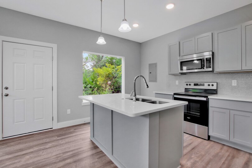$1,000 OFF FIRST MONTH'S RENT!! 4 bed / 2.5 bath Newer Modern Home Main Level: The open floor plan is perfect for entertaining, large picture windows off the living room and kitchen face a beautiful mature tree line. The kitchen features granite or quartz countertops, stainless steel appliances; refrigerator, stove, microwave, dishwasher, and large food pantry. The main level also offers a half-bath, coat closet, and two car garage. Backyard includes a cement patio, privacy partitions, and faces a mature tree line, offering additional privacy. Landlord provides mowing services. Enjoy a spacious 2 car garage! Second Level: Washer and dryer hookups are located on the second level along with a linen closet, full bath with tub, four bedrooms, including a primary ensuite with a double vanity and walk-in closet. This is a beautiful 4 bedroom, 2.5 bath duplex. Pet-free. Smoke-free. 2 car garage. Granite Countertops. Large picture windows. Laundry and bedrooms on upper level. Master ensuite. Tenant pays all utilities. Landlord to provide mowing service.