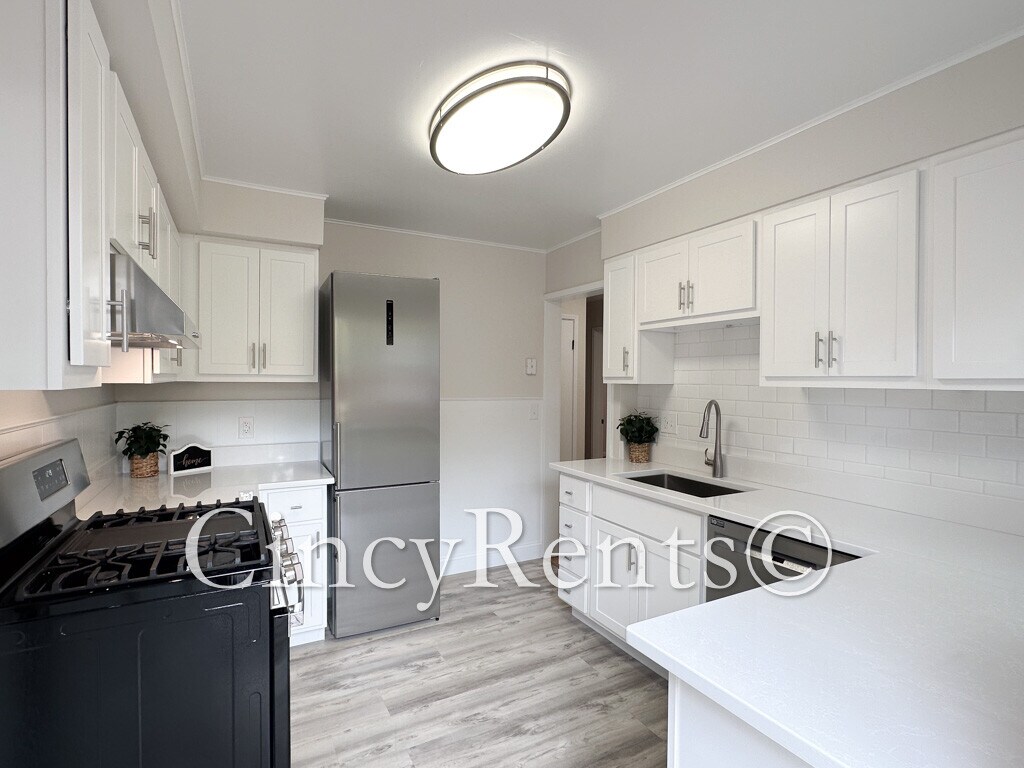 Newly renovated three bedroom one full one half bath single family home situated on a quiet wooded lot in stellar location near Kenwood Towne Center in Indian Hill Schools! This 1400sqft ranch style home features brand new updates and renovations! The kitchen impresses with new cabinetry, flooring, quartz counters, and stainless steel appliance suite including dishwasher and range. Open concept living room and dining, three spacious bedrooms, and full bath, complete with new doors, fixtures, and gleaming hardwood flooring throughout! Additional recreational space in the lower level offering wet bar, half bath, laundry room with full size washer and dryer, and expansive storage room. Enjoy evenings on the walkout deck overlooking large rear yard with oversized multi car garage and mature trees. With supplemental features such as central heating and air, windows treatments, and located just blocks to dining, shopping, and entertainment of Kenwood, this home offers an easy commute to I-71 and is a must see. Call for a private showing today!
