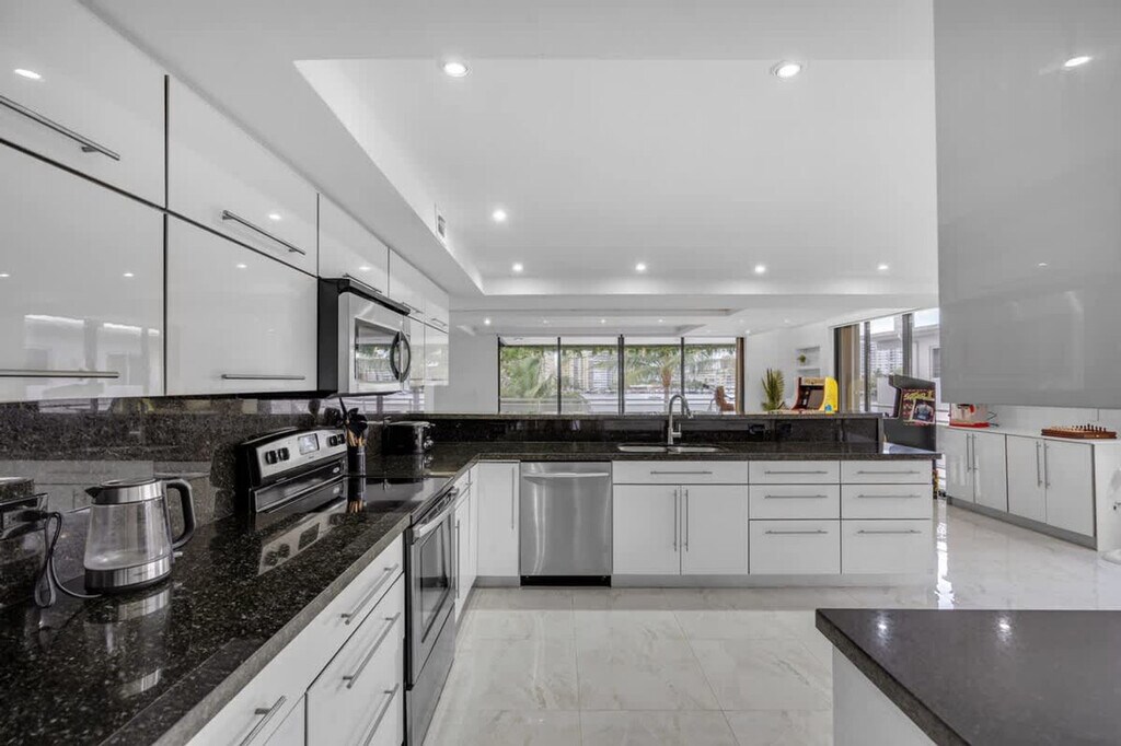 Feel at home in this newly renovated, 2200-sqft paradise apartment on the 3rd floor in the heart of Hallandale Beach. This waterfront apartment offers sunrise and sunset views and features 3 bedrooms and 3 bathrooms. Designed with comfort in mind, this apartment features 2 balconies with waterfront views and a workout station, high-speed free Wi-Fi, a pool, 1 free assigned parking space, and a washer and dryer in the unit. Entertainment options include arcade games and smart TVs in all 3 bedrooms. Air mattresses can be provided upon request. Boat and Jet Ski rentals are available. This apartment is centrally located within 0-1 mile of Shuls, groceries, and restaurants, and 1 mile from the beach. Aventura Mall is an 8-minute drive, Fort Lauderdale Airport (FLL) is a 15-minute drive, Brickell/Midtown is a 20-minute drive, Miami International Airport is a 25-minute drive, and South Beach is a 30-minute drive. Ride-sharing services like Uber or taxis are highly recommended for getting around. If you are coming with more than 1 car, you will need to use street parking for $25 a day. [SI]