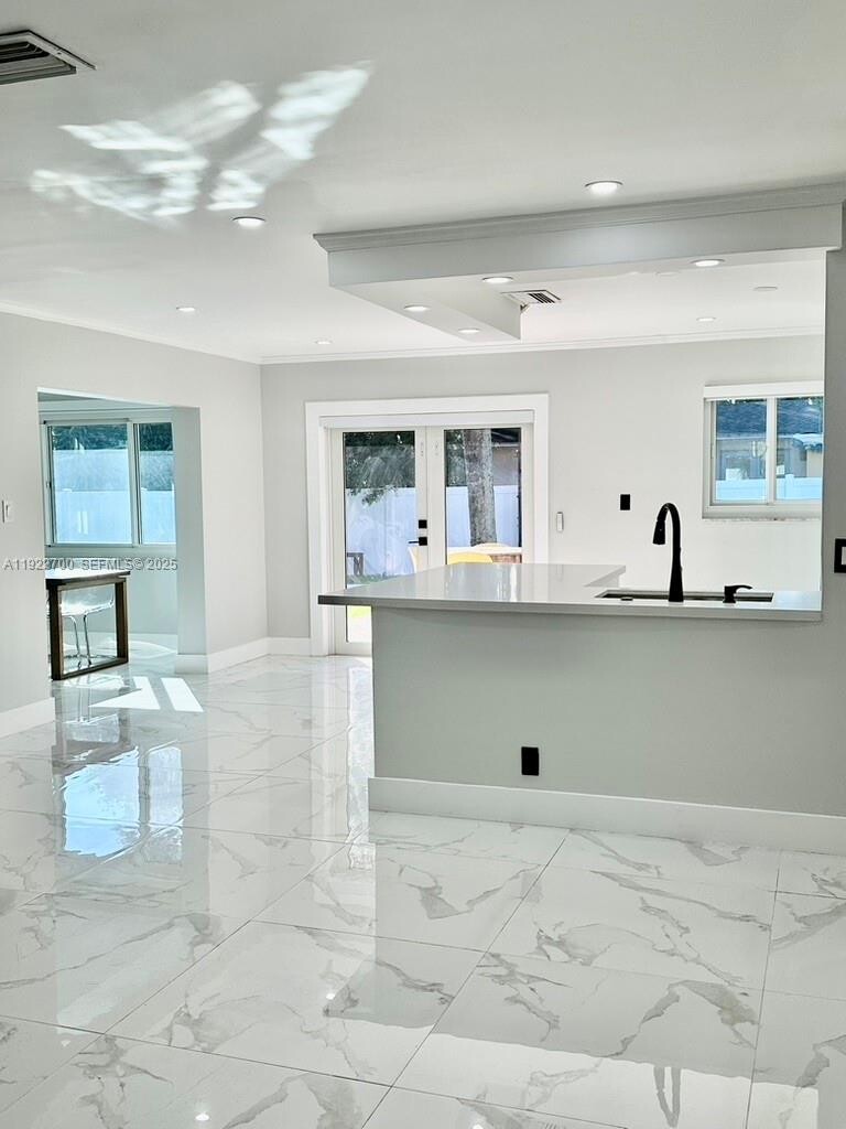 Modern 3-Bedroom, 2-Bath Home with Pool, Custom BBQ & Pergola. Beautifully renovated 3-bedroom, 2-bath single-family home offering the perfect blend of indoor comfort and outdoor living. Located in a desirable neighborhood, the property features a clean contemporary exterior, a covered carport, a spacious stamped concrete driveway, and lush tropical landscaping for impressive curb appeal. Open-concept layout filled with natural light, highlighted by marble-style porcelain flooring, recessed lighting, and a fully updated kitchen with white shaker cabinets, quartz countertops, stainless steel appliances, and an oversized peninsula ideal for entertaining. The outdoor area is a true private oasis complete with a sparkling pool, a custom-built BBQ station, and a stylish pergola designed for shaded lounging and dining.