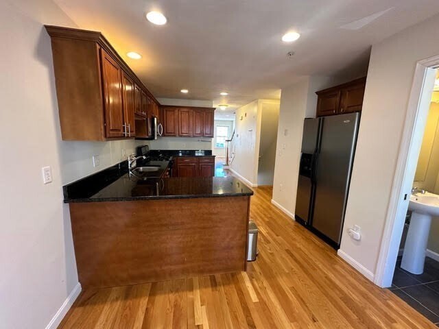 **AVAILABLE FOR JUNE 1** A nice,younger 2 bed 1.5 bath TOWNHOUSE condo for rent in an ideal downtown Waltham location @ Fieldstone Crossing. 1st level has the 2 CAR UNDER UNIT GARAGE PARKING. 2nd level is the main living space w/ a GRANITE & STAINLESS eat-in kitchen w/ French doors to small balcony,half bath,open living room w/ separate small dining area & a GAS FIREPLACE. 3rd level has the 2 bedrooms & the full bathroom. The primary bed has cathedral ceiling & a bonus loft space which is ideal for a home office. The 2nd bedrm has a small balcony. Unit has HARDWOOD floors,CENTRAL AIR for HEAT & COOLING,recessed lights. WASHER & DRYER for use in the garage. Tenant to pay all utilities (including gas,electric,cable/internet & water/sewer). Landscaping,snow removal & trash removal are included. SORRY NO PETS & NO SMOKING. 1st,last,1 month security deposit. Great location close to all Moody St amenities,shops,restaurants,Charles River,MBTA service including the Commuter Rail. MLS# 73494326